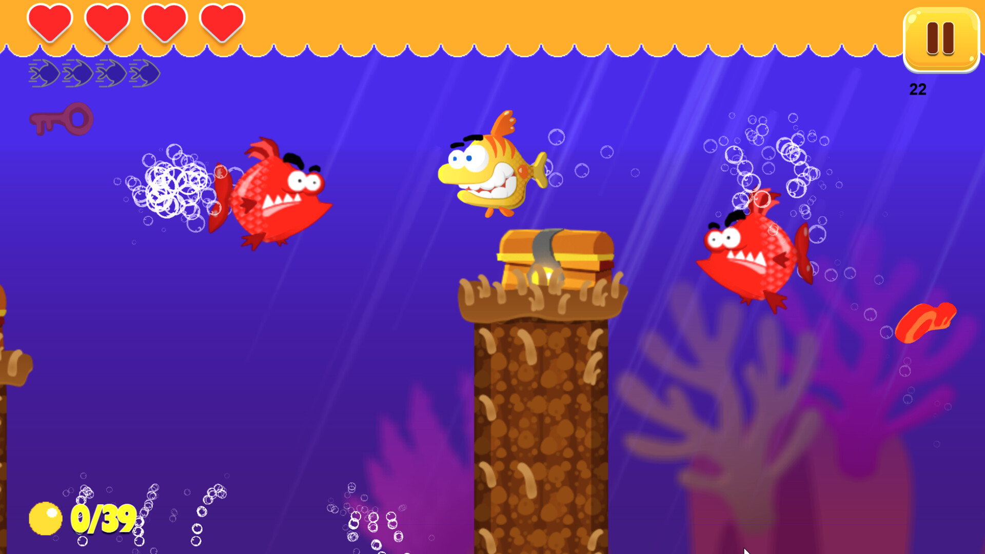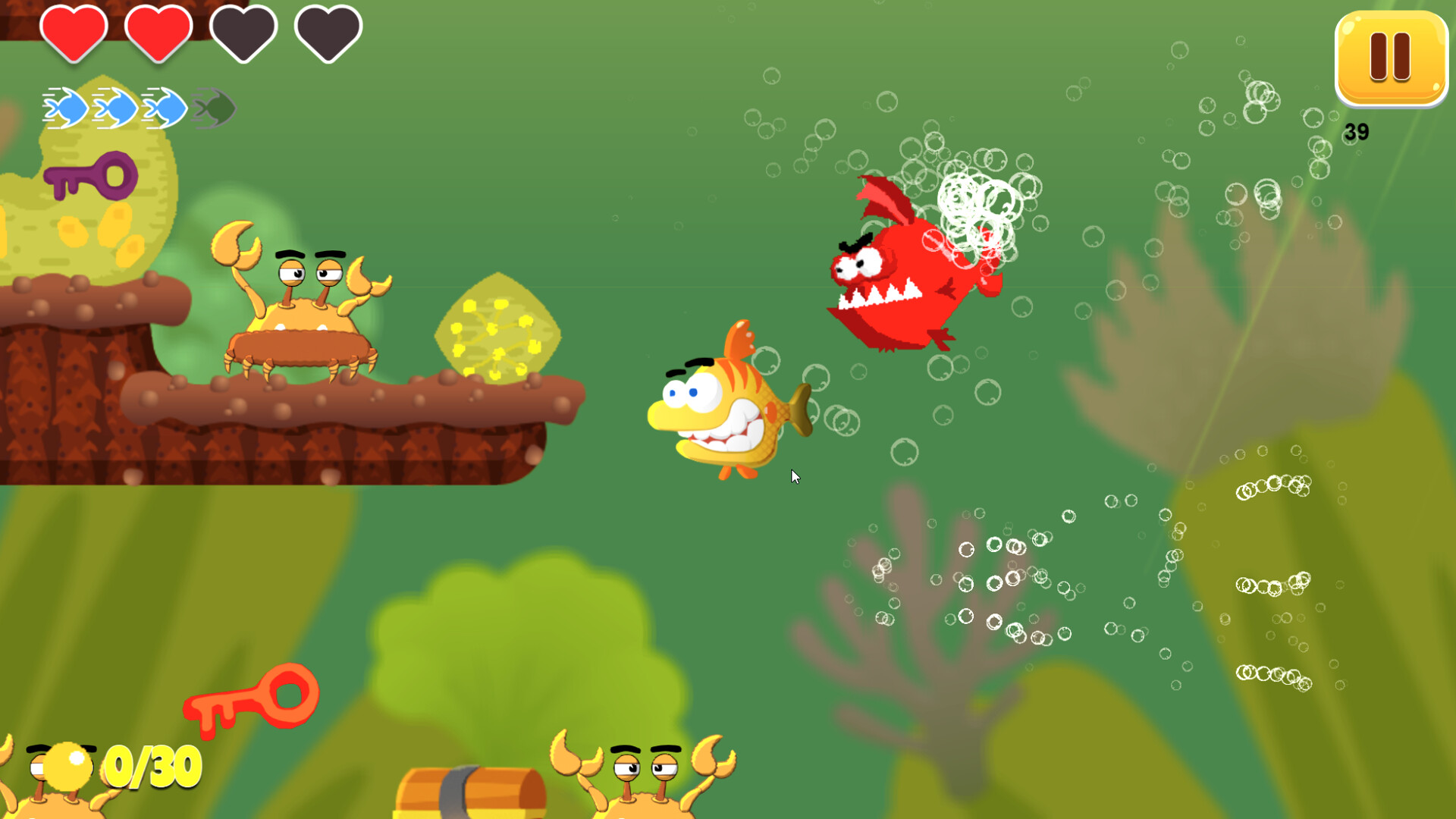 몰입감 넘치는 수중 탐험: 산호 미로, 해류, 숨겨진 공간 등 섬세하고 세밀하게 묘사된 설정에 잠수하세요. 밝고 유쾌한 카툰 스타일로, 이 게임은 모든 연령대가 즐길 수 있는 친근하고 매력적인 분위기를 제공합니다.
