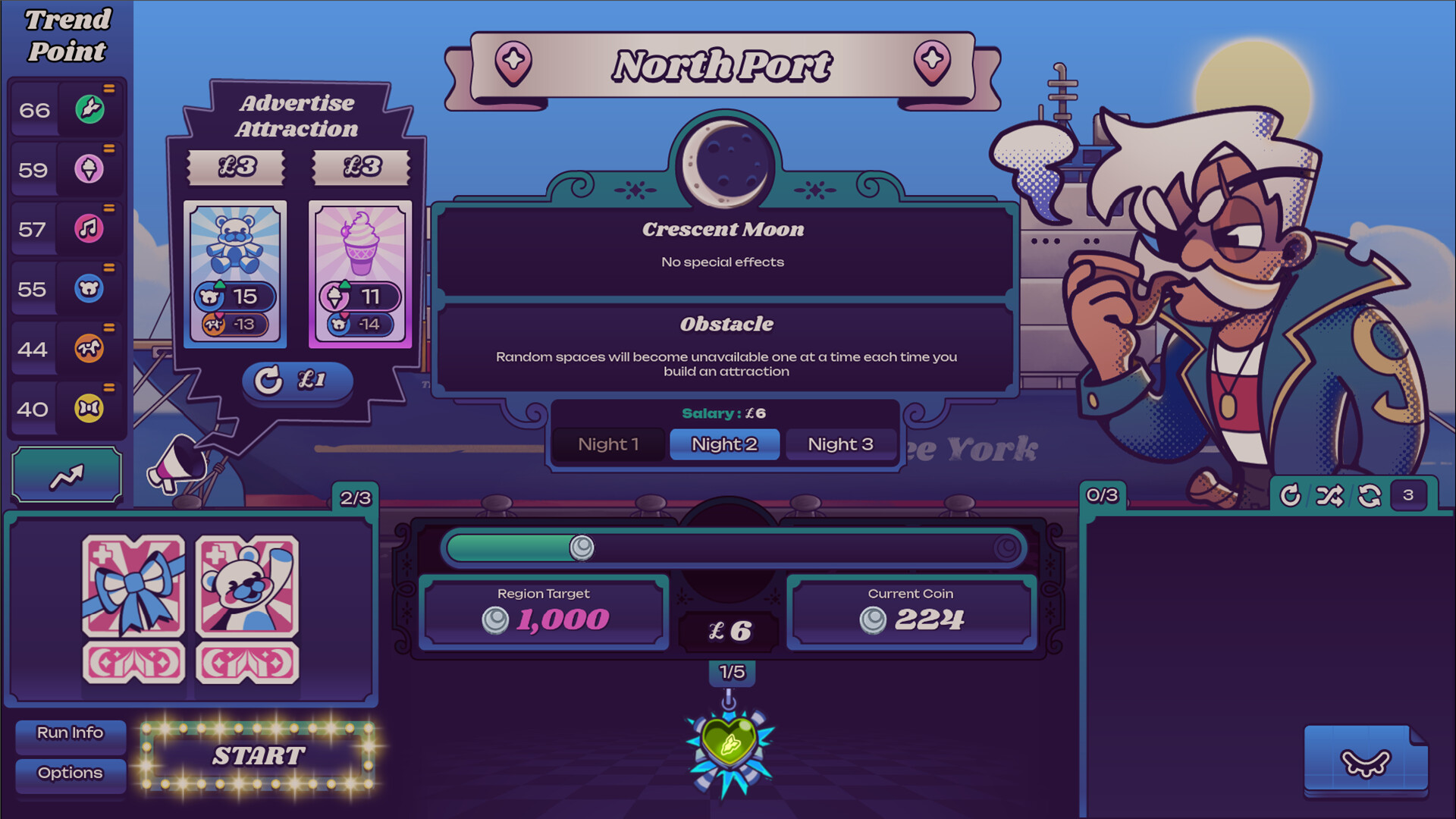 Each night, you must earn enough coins to pay rent to the region’s landlord or risk bankruptcy. With ever-changing market trends and unique regional conditions, adapt your strategies on each journey, chain powerful synergies, and optimize your night market to perfection to help Luxman build the world’s most famous night market!