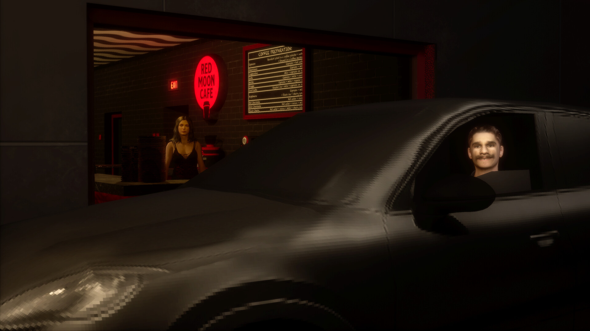 The main heroine lives in difficult conditions, desperately seeking a way out of poverty and her toxic surroundings. She decides to take a job at the mysterious night café, Red Moon Cafe. There, she must prepare coffee, maintain order, and serve unpredictable customers whose behavior pushes her fragile psyche to the edge. Over time, she begins to realize that the café’s owner may not be who he appears to be.