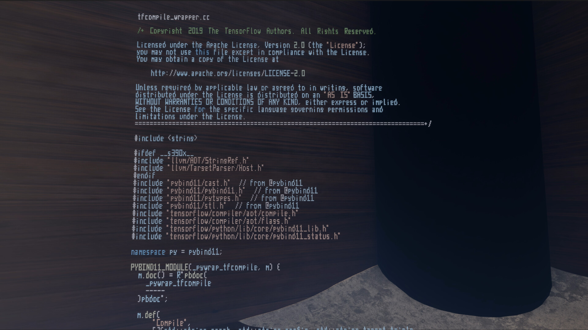 This demo visually showcases code examples from TensorFlow (© Google Inc.), licensed under the Apache License 2.0.