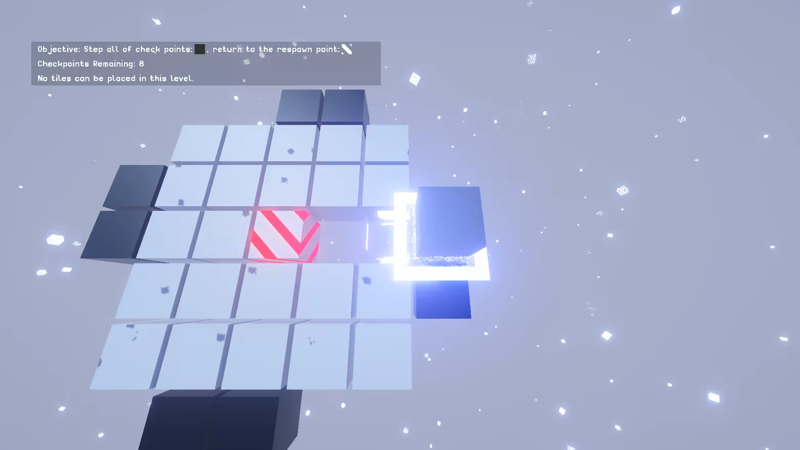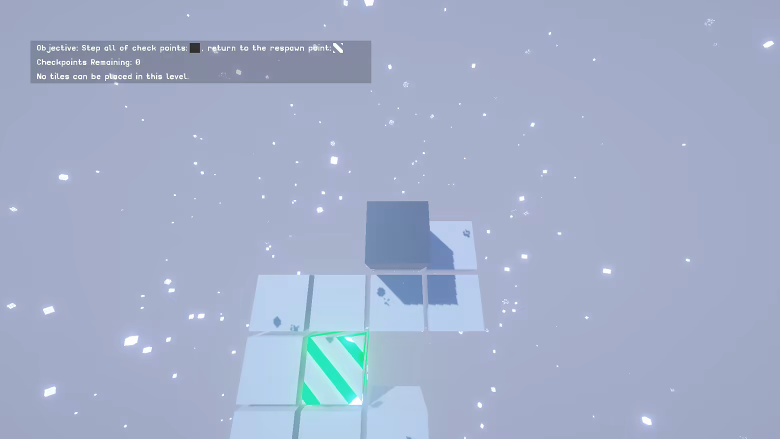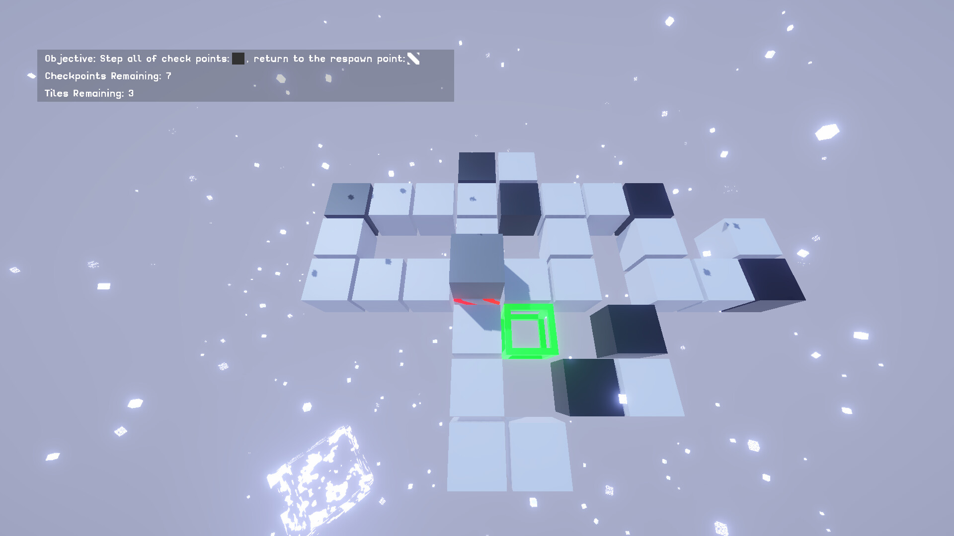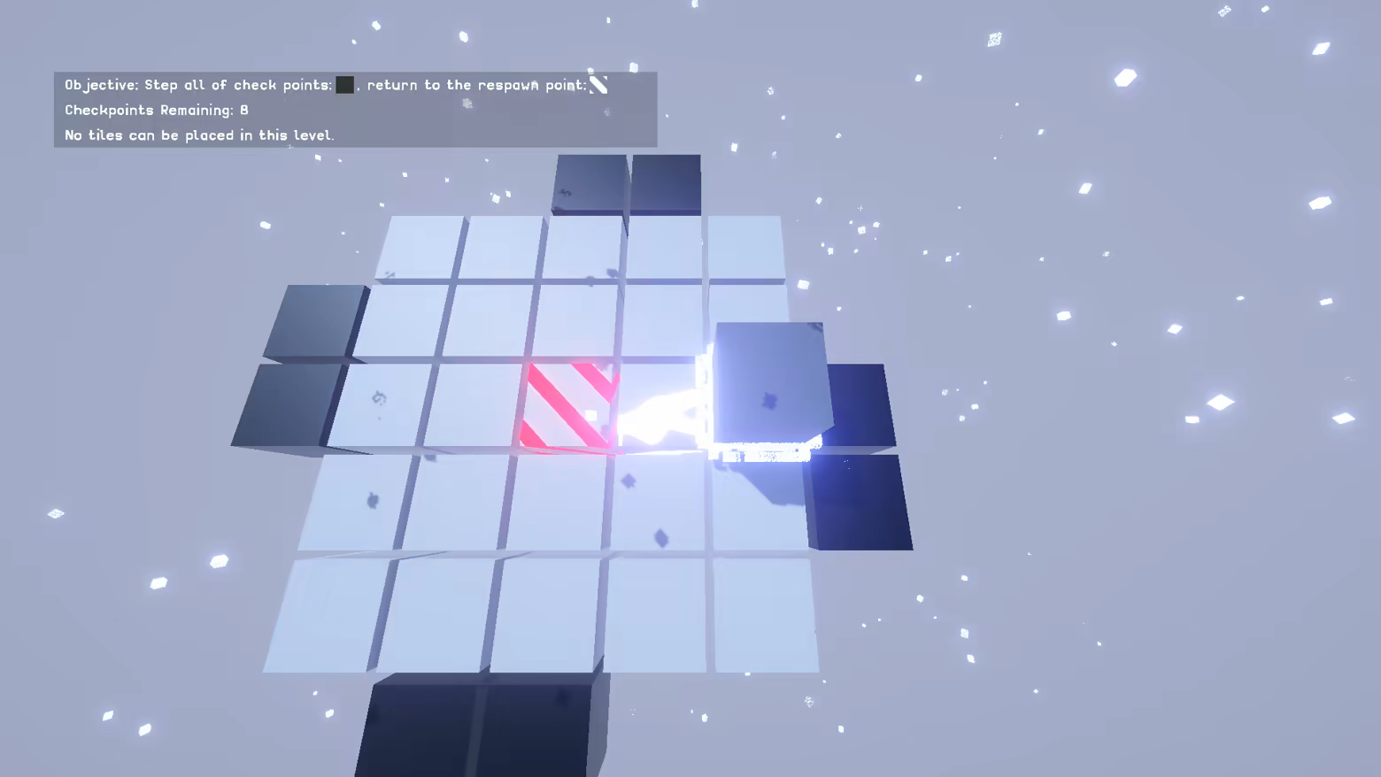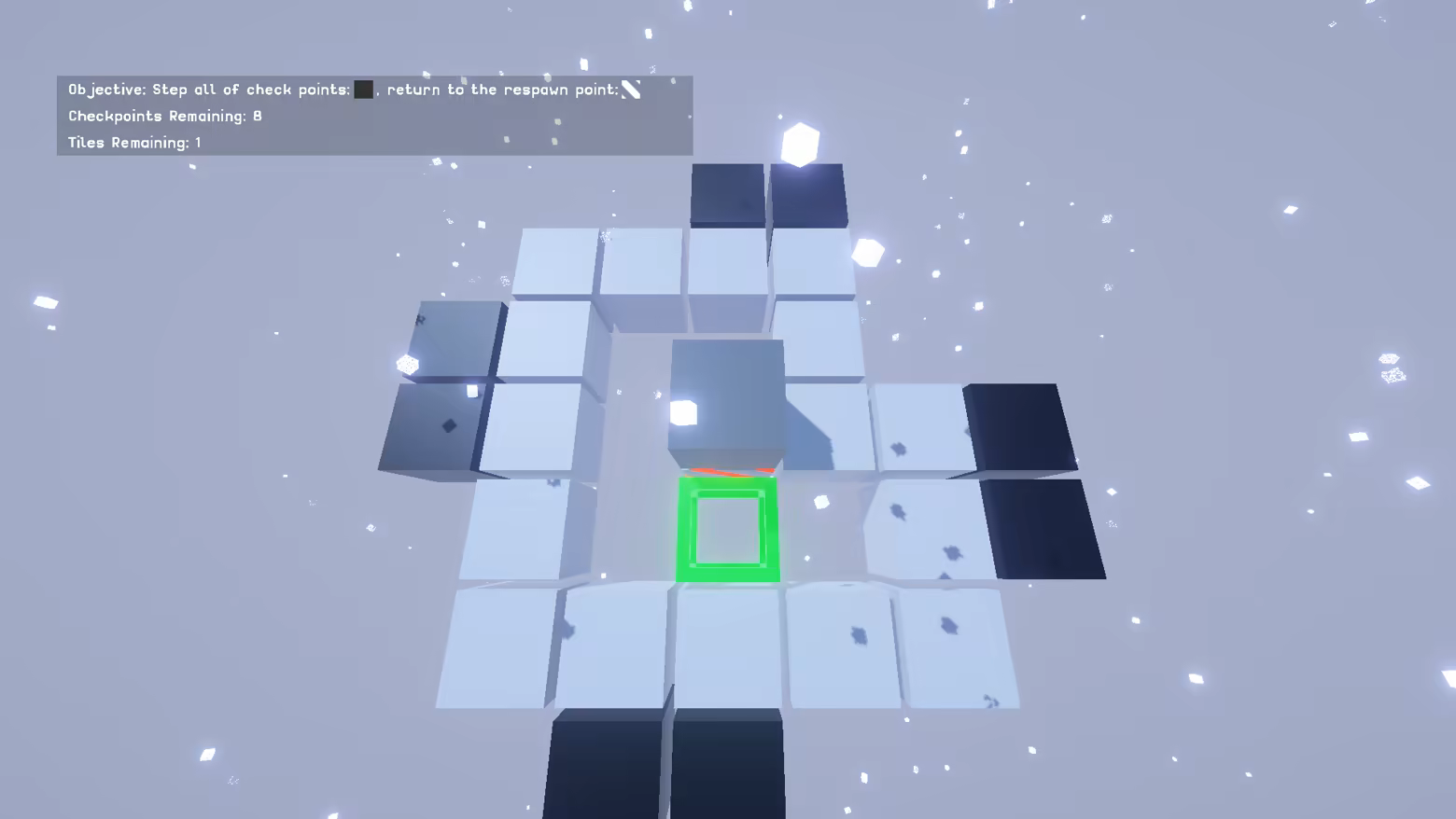 The goal of this game is to step on checkpoint tiles in the level and return to your respawn point.