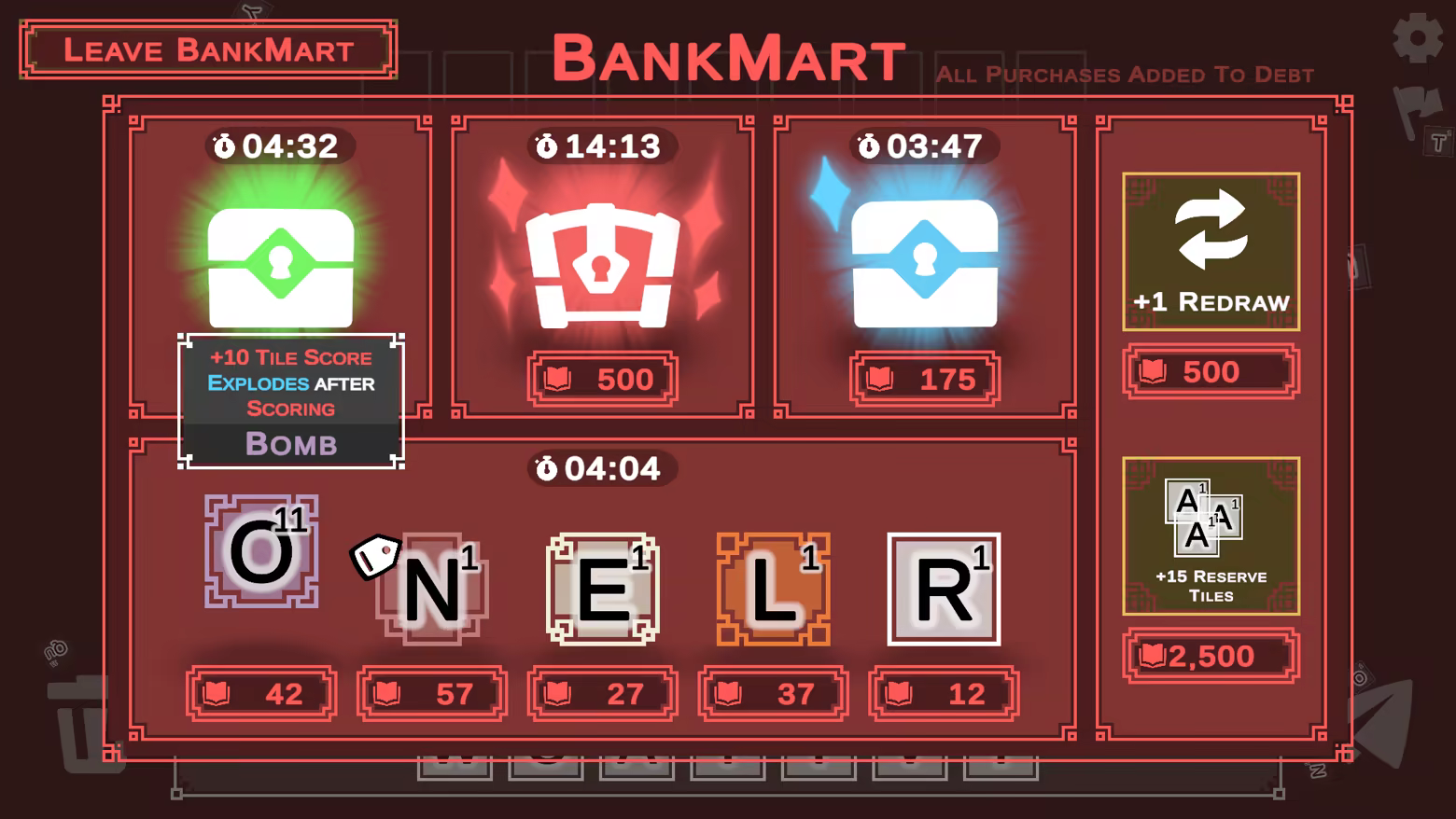 Wish you had a vowel? Need just a little something to kick your next word over the edge? BankMart has you covered. For just a little bit of debt, you can have just the piece you need right now!