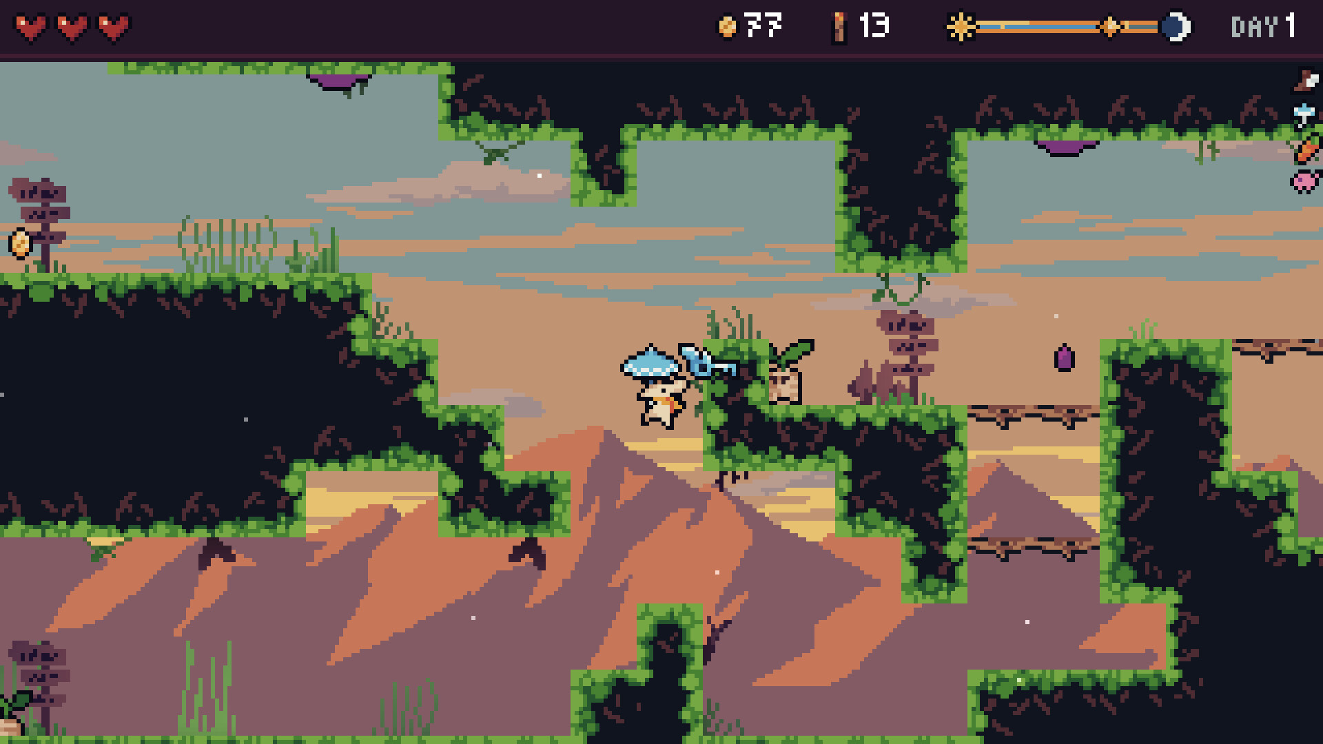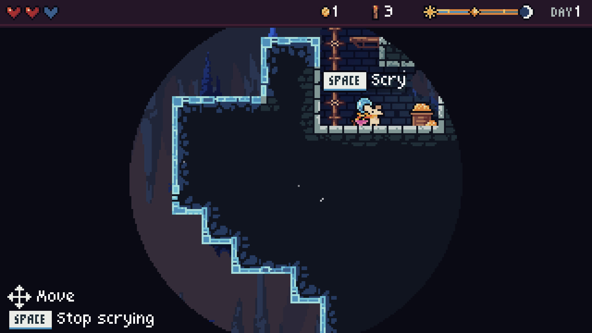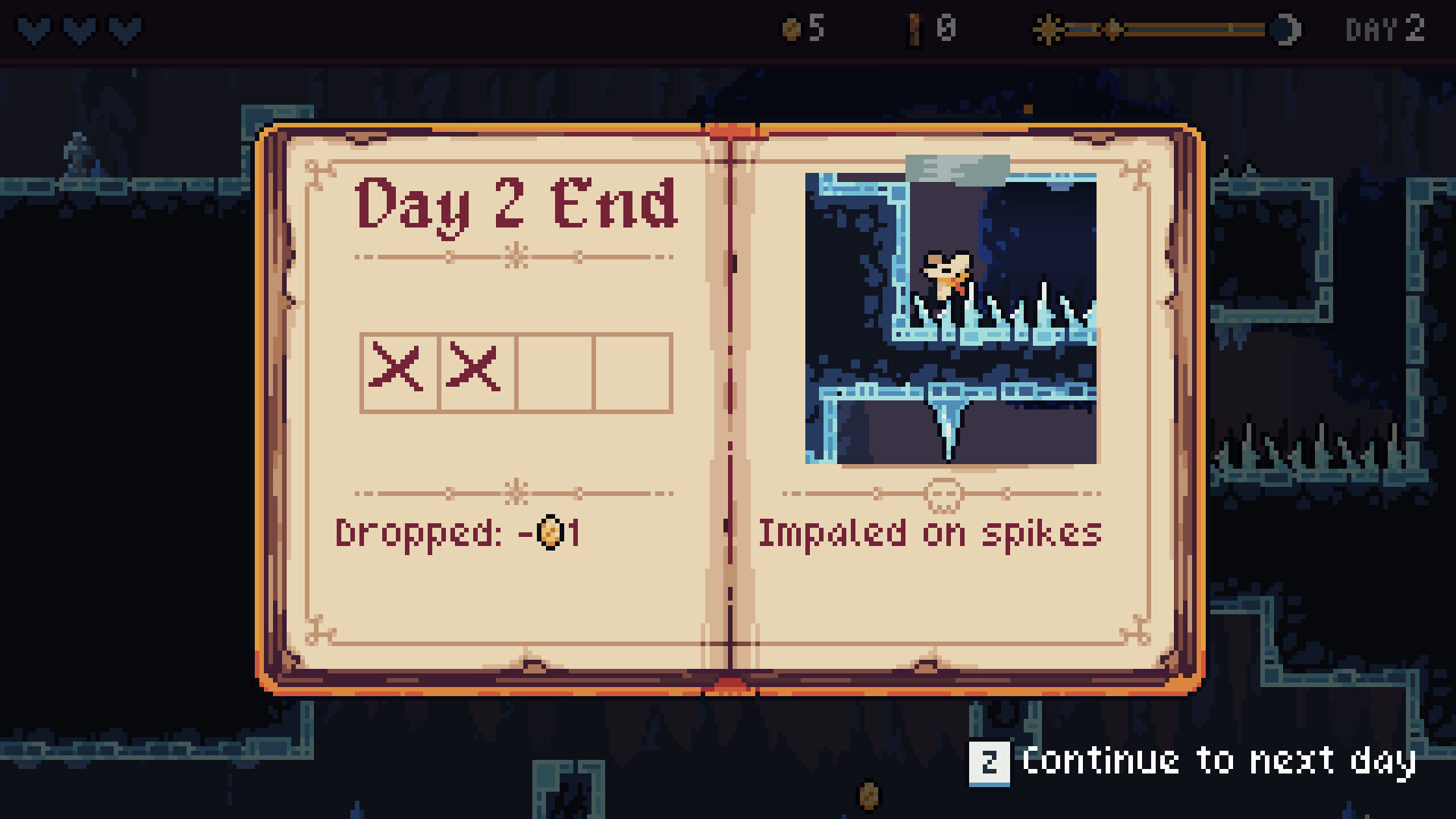 Each day, you'll need to loot the dungeon and find your way back to the shop before night falls. There, you can purchase various upgrades to push further on the following days within the same run.