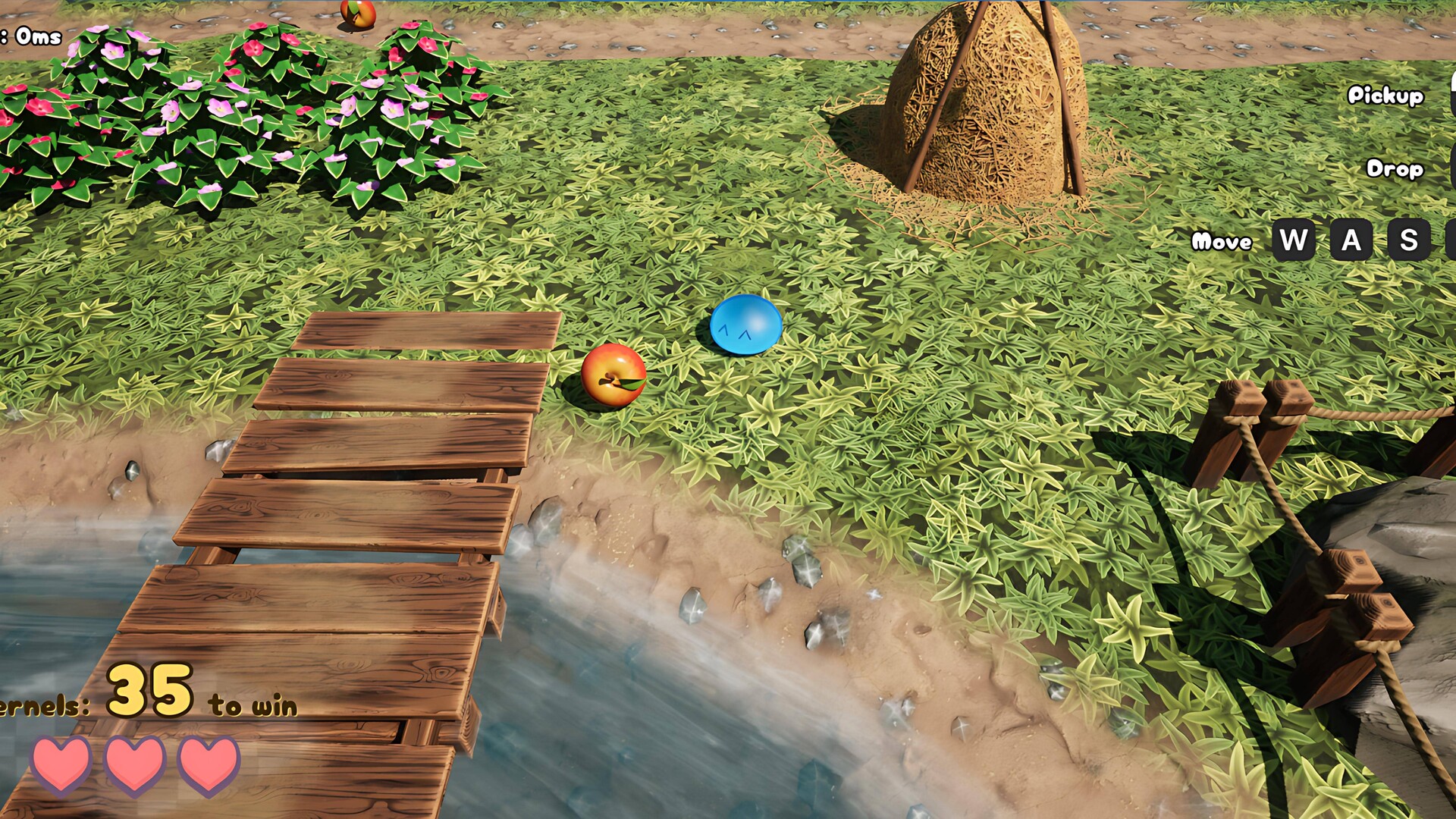 This is a fast-paced asymmetrical multiplayer game where one player controls two determined farmers, and everyone else plays as mischievous slimes trying to steal every apple on the farm.