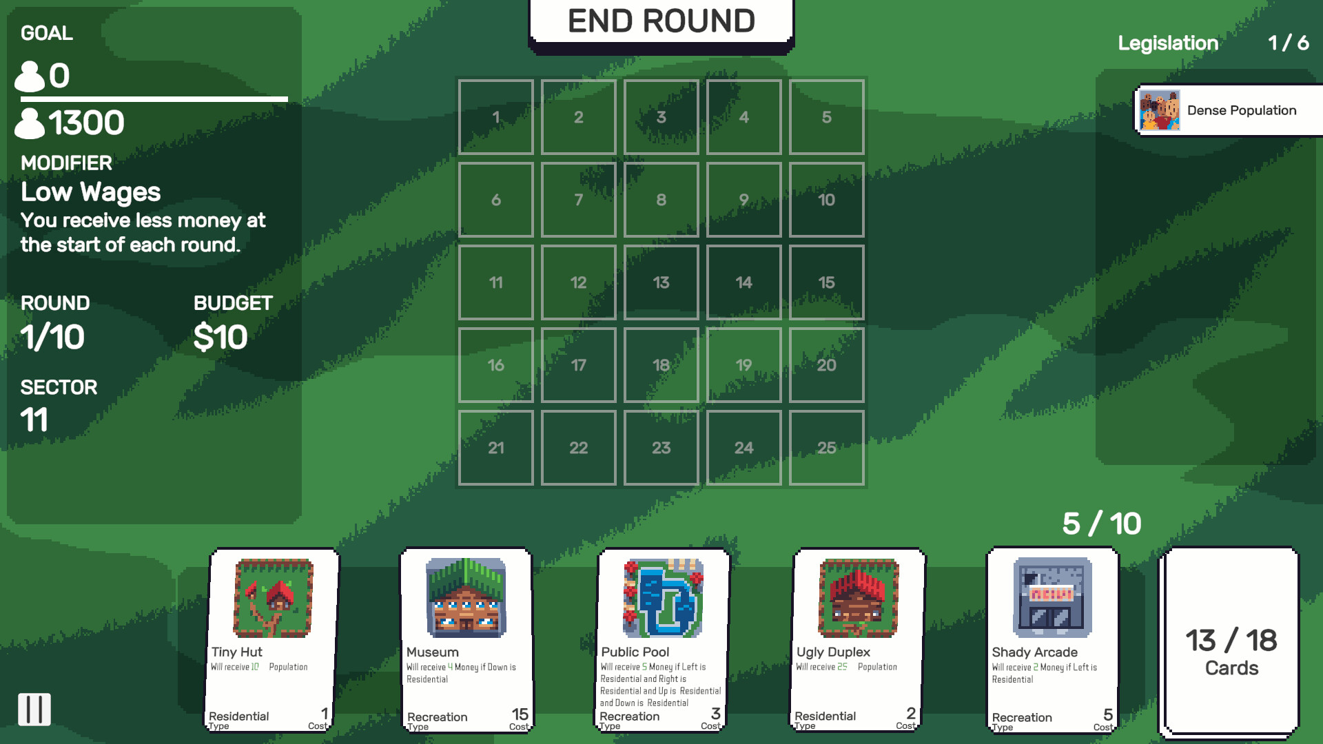 Cardopolis is card based city-builder, where you take on the role of Cardopolis' Mayor. Build up your city card by card, law by law, sector by sector and avoid meeting your investors' ire by reaching your goals in time!