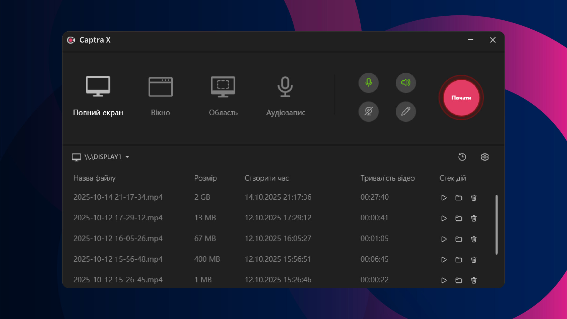 🖥️ Запис всього екрану, окремого вікна або обраної області (Запис екрану)