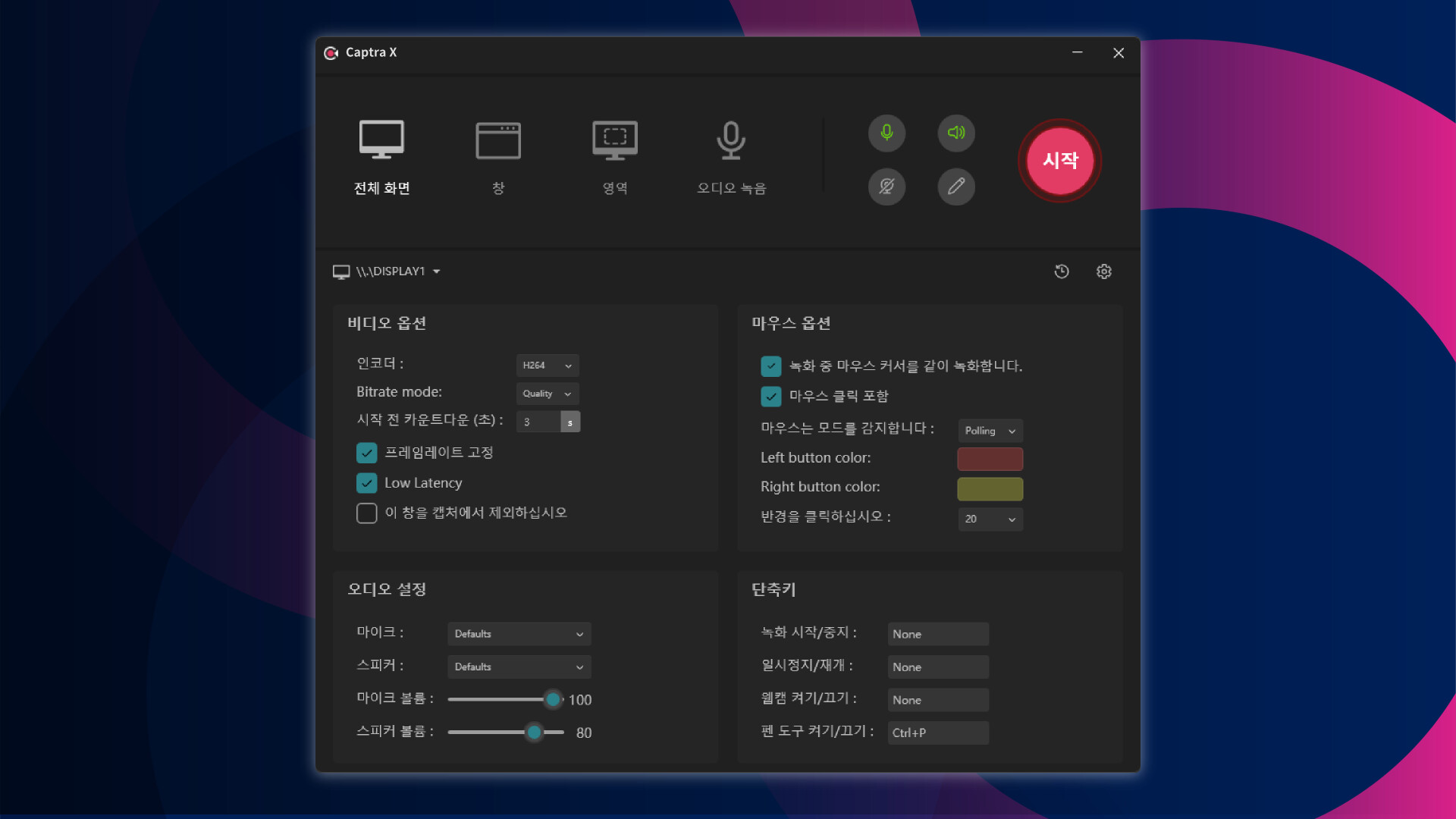 Captra X - 화면 녹화 프로그램에 대한 사용자 평가 사용자 평가 정보 환경 설정