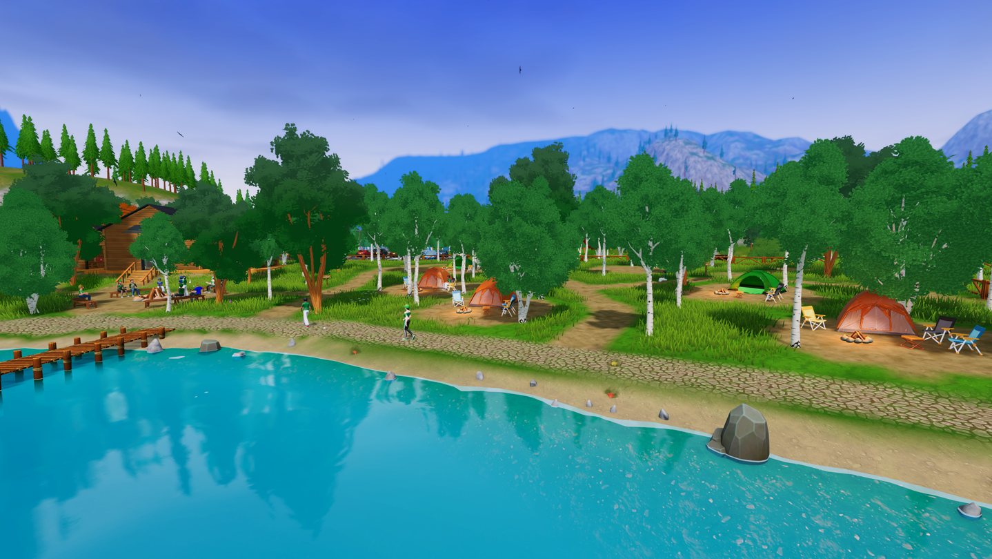Shape your campground’s identity! From decorative elements like benches, lanterns, and pathways, to larger structures such as bridges, docks, and playgrounds, customization lets you make your campsite truly yours. Will you run a rugged, back-to-basics wilderness retreat or a luxurious glamping resort? The choice is yours.