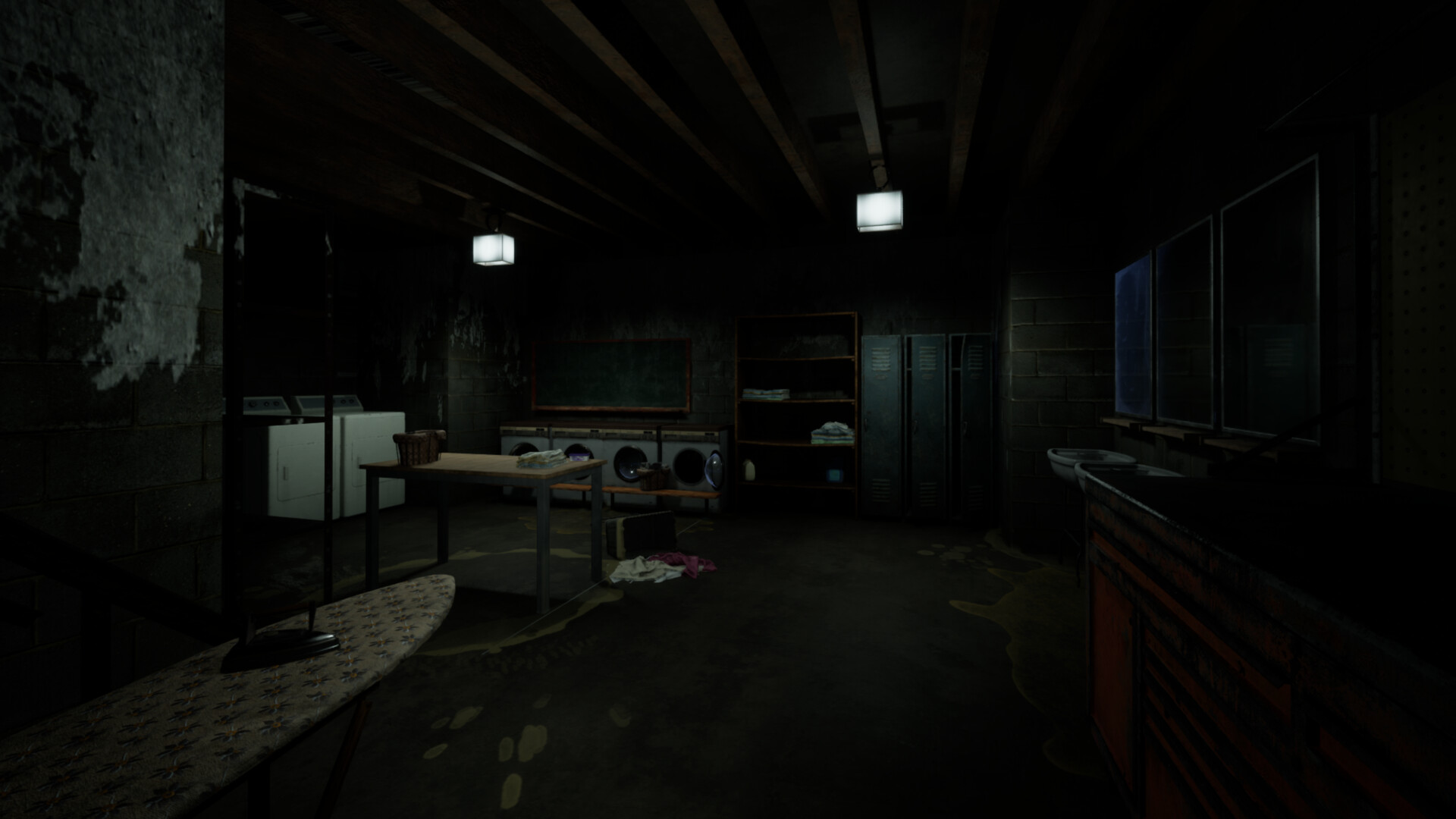The game's environment and lighting create an immersive, anxious atmosphere, full of tension, fear, and isolation.