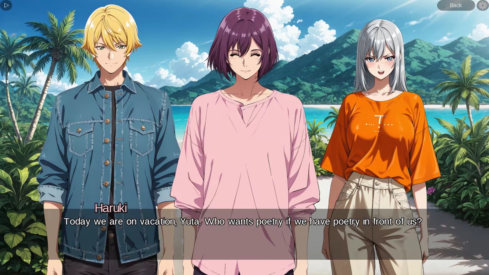 The basic premise is simple: a vacation trip to a remote island in Japan, touristy and paradisiacal. Your goal is to visit your friend Kana, but once you are there, you will meet other characters with whom you can build different kinds of relationships: friendship, romance, casual sex, lust, and much more.