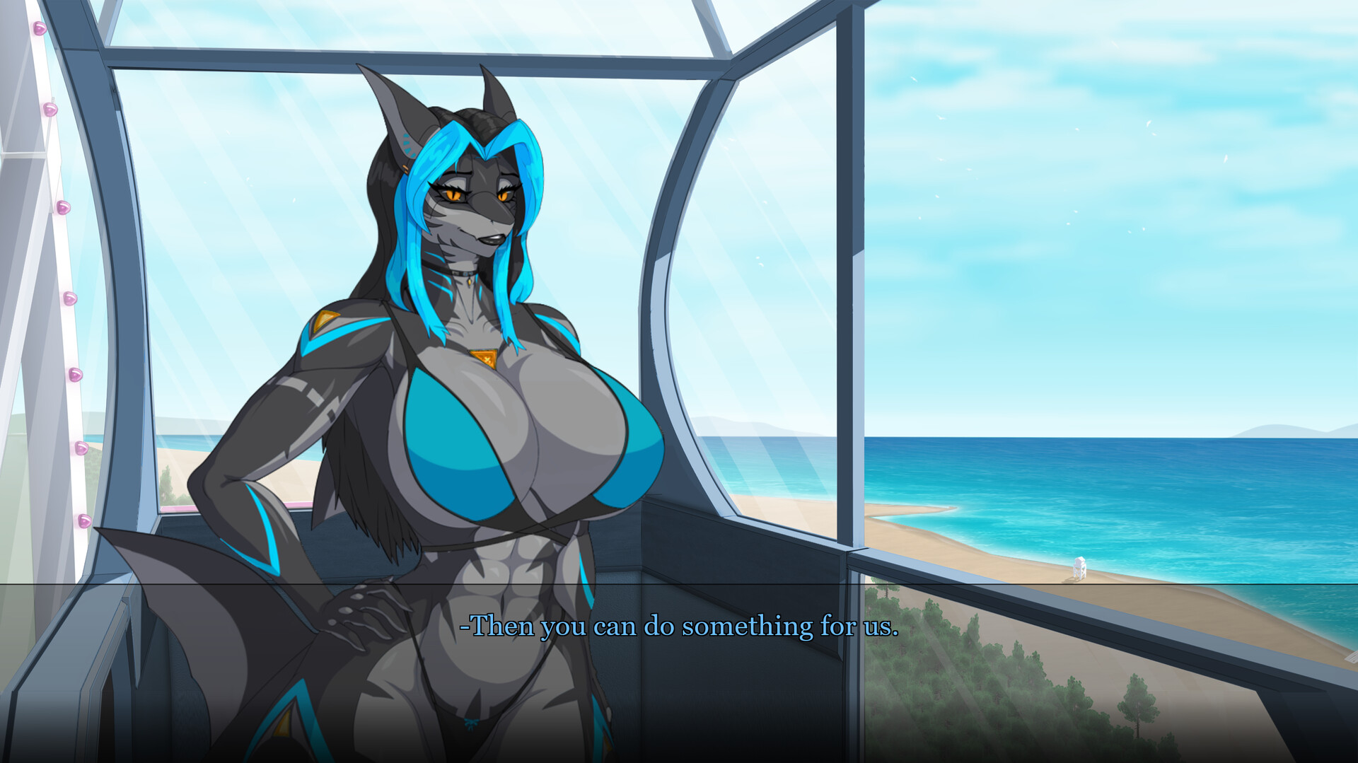 2) История - визуальный роман, где можно развивать отношения с тремя фурри девушками-андроидами. Есть возможность делать выбор, который влияет на отношения с персонажами.