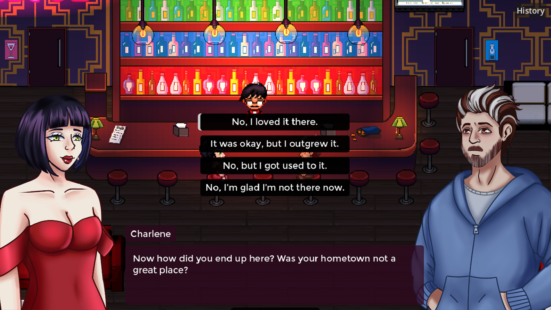 A Week in Paradise is an introspective game that explores ideas between the lines of optimism, realism, and cynicism. You play through the eyes of a struggling writer, Damien. When stumbling into a bar called Paradise, you meet Charlene, a jazz singer who's falling into a rut of her own.