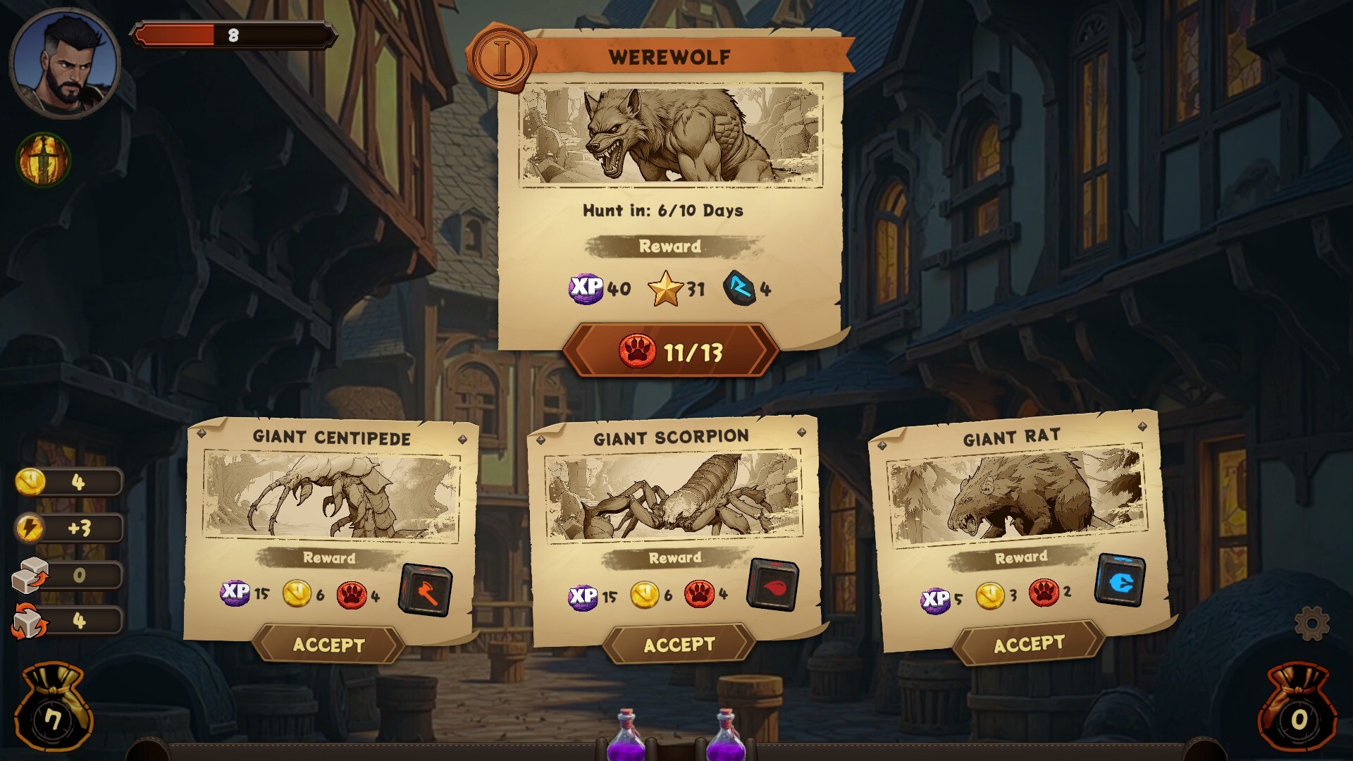 A dice-based roguelike about hunting beasts in a dark medieval fantasy world. Preparing for a run is just as deep and strategic as the run itself.