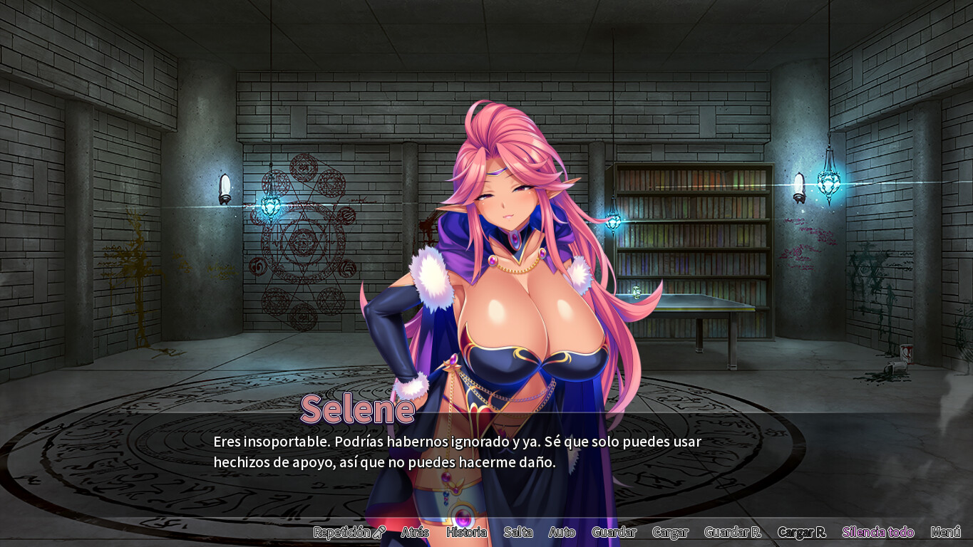 Recorrer la mazmorra es un martirio, soportando el coqueteo de la chica quien se lanza a los brazos de su novio, el cual no le hace caso. Tu único respiro es el aburrido combate contra los débiles slimes. Finalmente, el grupo se topa con una habitación que contiene un grimorio mágico y, antes de que entre el novio, lanzas un hechizo que los atrapa a ti y a la cachonda chica, a solas en la habitación. ¡Y, como era de esperarse, ella se cree por completo de que "esta habitación tiene un hechizo mágico y que no se abrirá hasta que quienes estén dentro tengan sexo intenso y salvaje"!