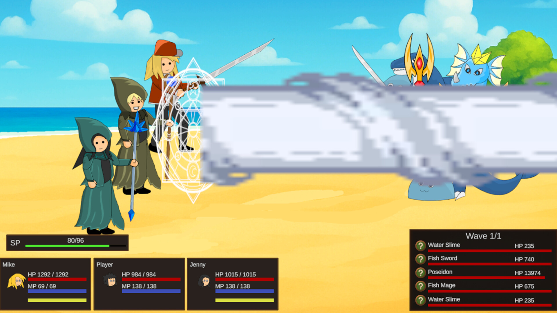 -             Turn-based combat – skill upgrades, buffs, debuffs, and tactical choices.