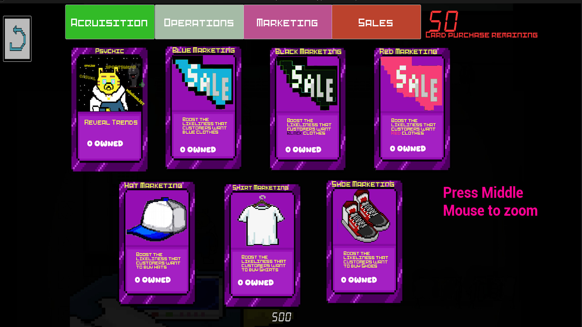 Play as Woj to run a successful vintage clothing store in space. Travel in time to different decades & places on Earth to buy inventory and try to match your customer wants for the most profit. Build your deck of contacts, develop your store, manage staff & create sponsored clothing with celebrities