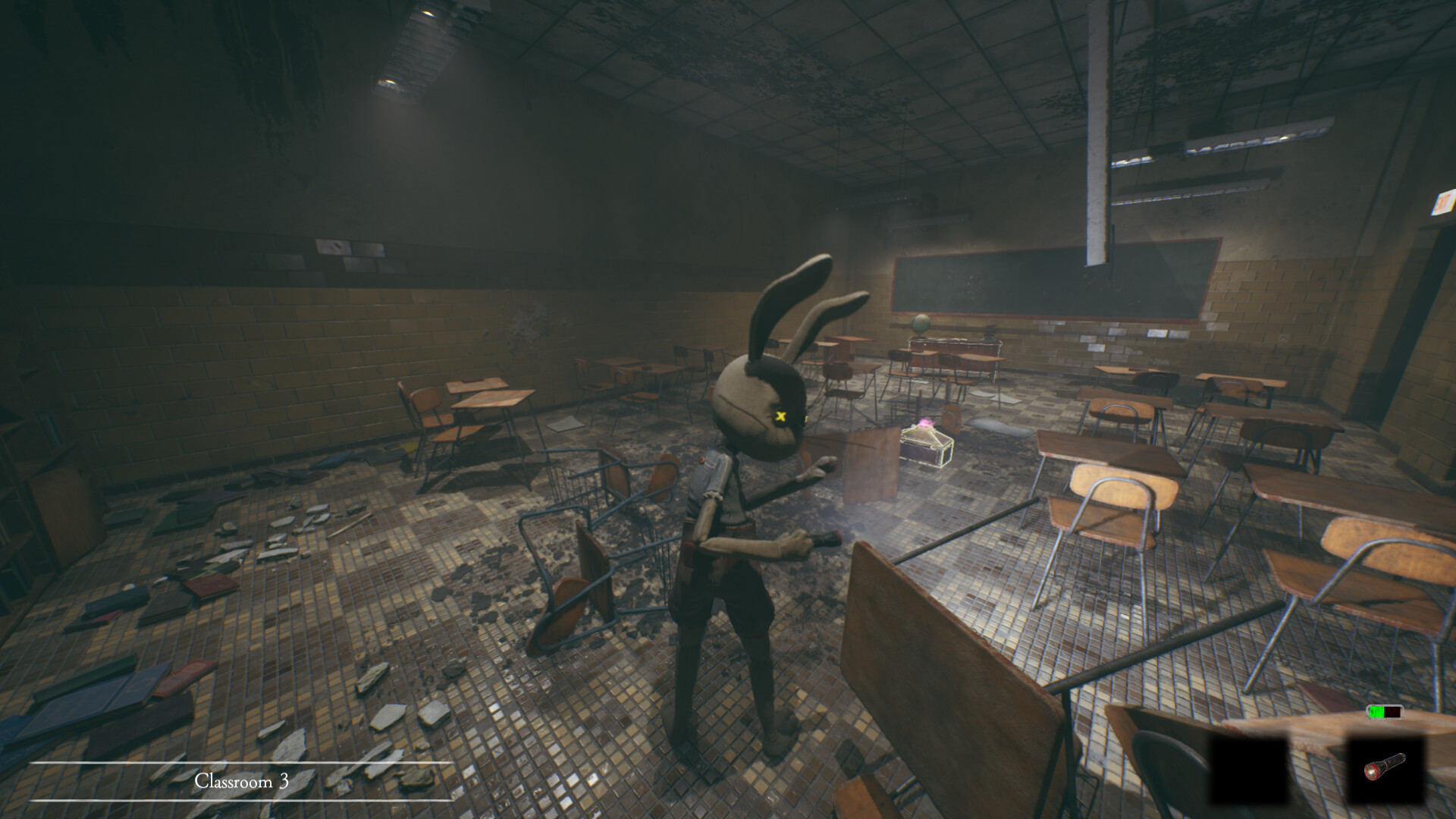 ・In the demo version, the abandoned school is structured on one level and each environment, such as classrooms, is fixed.