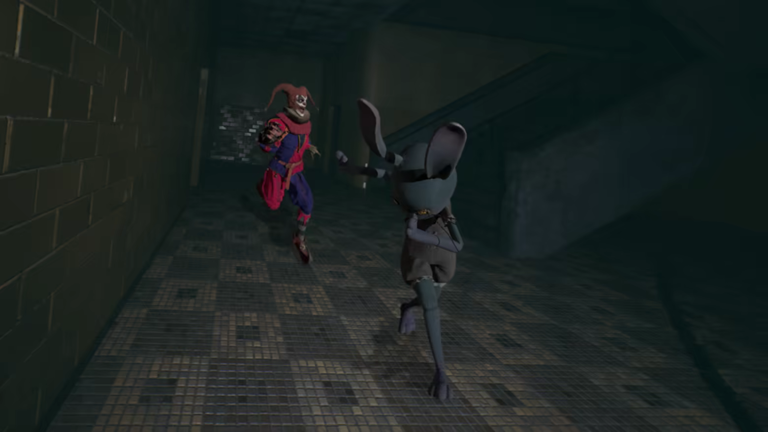 Avoid the clowns by using situational manoeuvres, such as hiding under lockers and desks, or using items to evade pursuit.