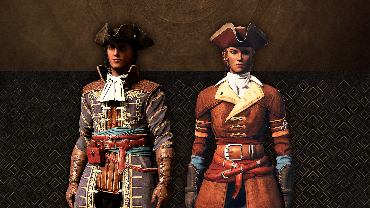 • The Merchant Congregation outfit: Walk the streets of the Old Continent, draped in gold and fine embroidery worthy of the greatest Merchants in the Congregation. Put on this luxurious outfit, which consists of a hat, coat, breeches, boots and gloves.