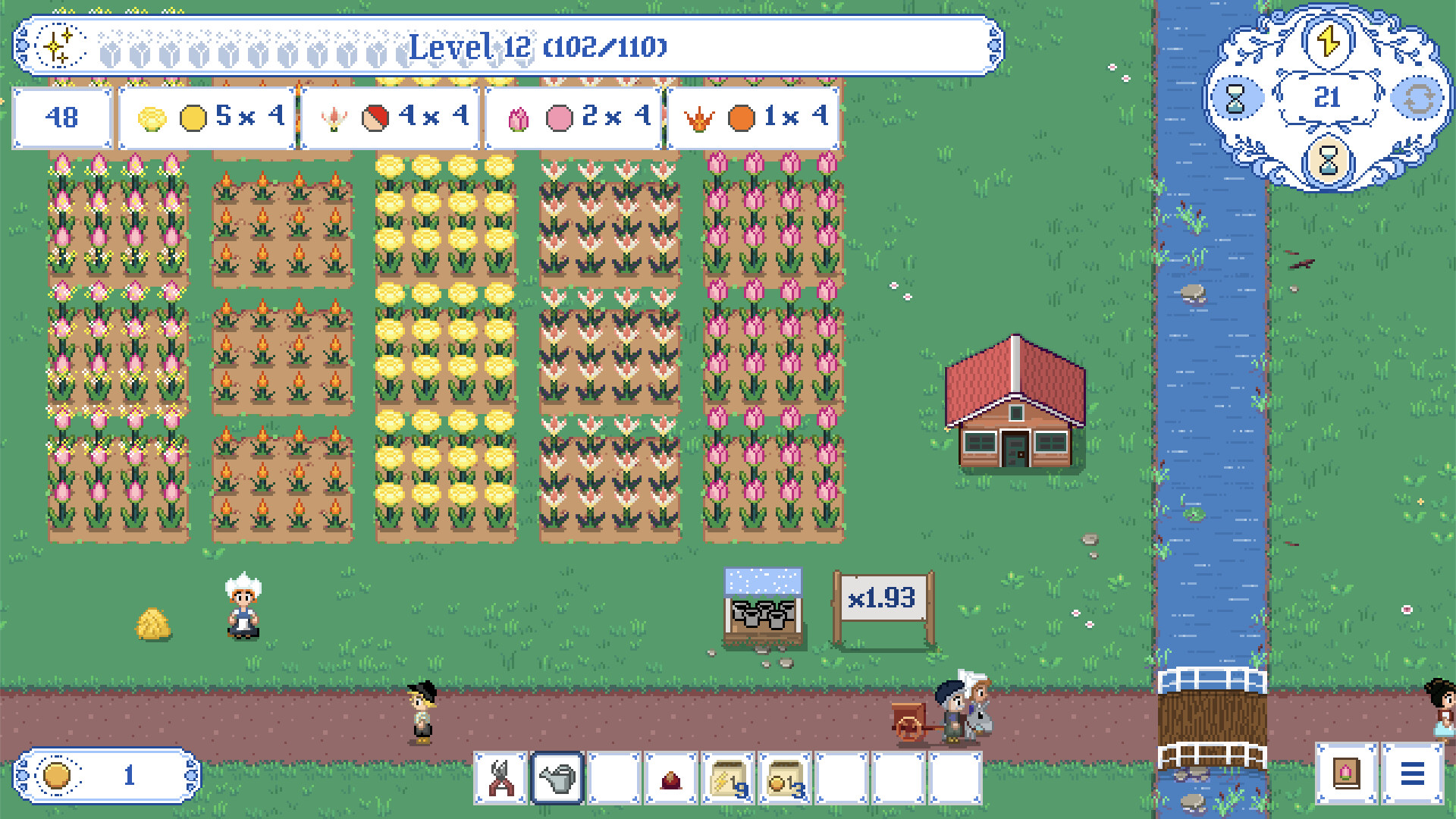Discover new tulip types as your farm develops. Breed flowers to reveal fresh color mixes and rare double blooms that add depth and beauty to your designs.