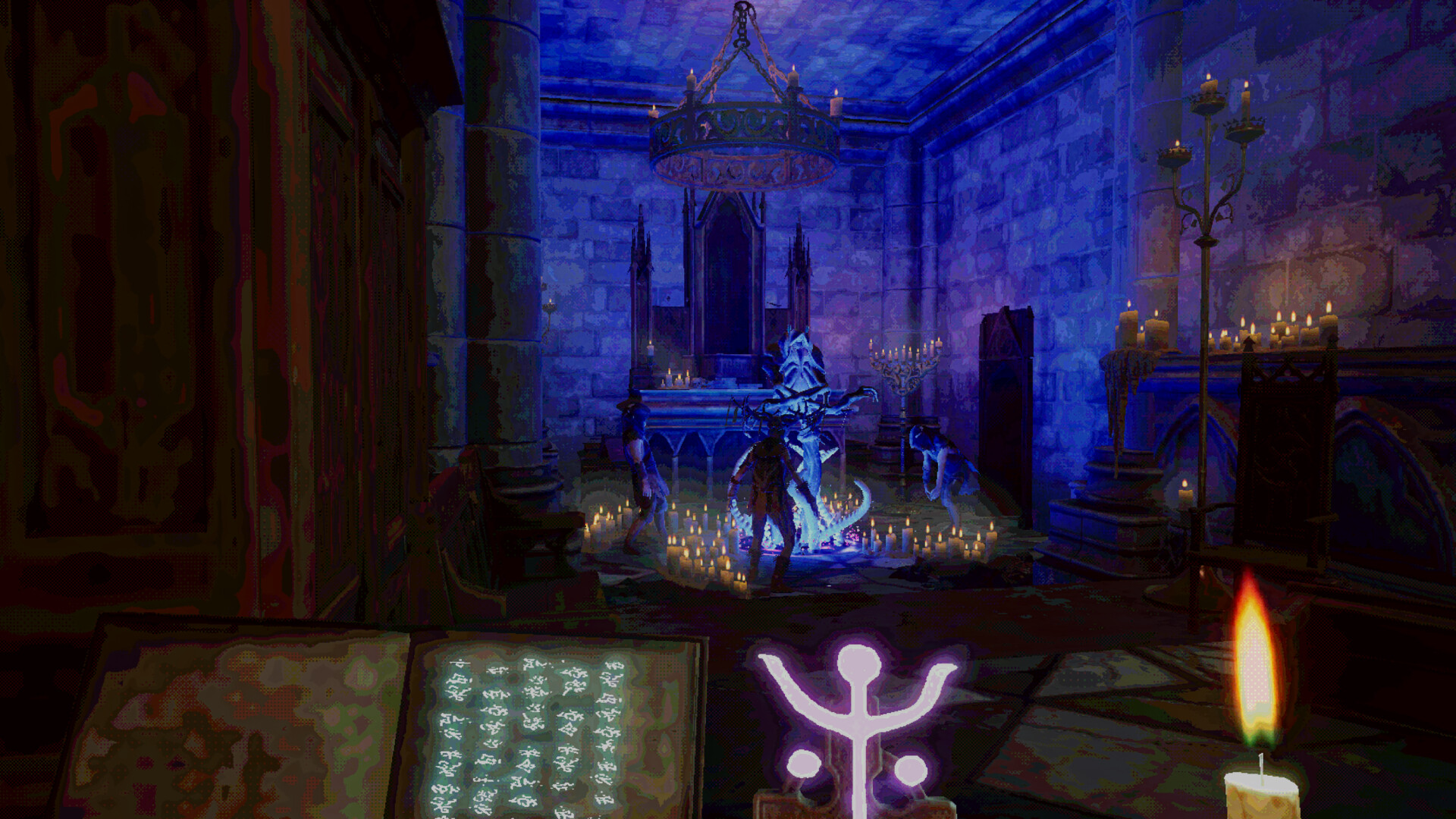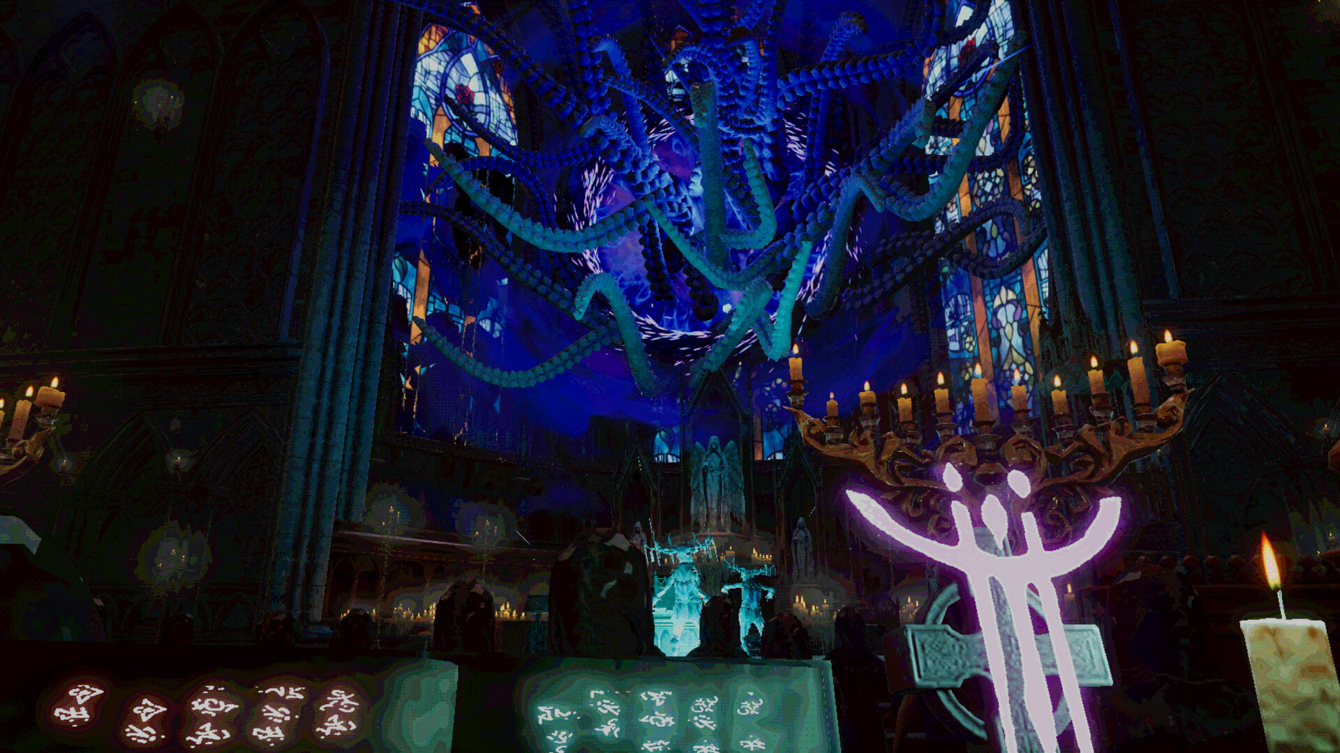 You are the Void Priest, bound to an Elder God against your will. Guided only by relics, symbols and light, you must solve eldritch mysteries, perform forbidden rituals, and survive long enough to choose: remain faithful or betray.