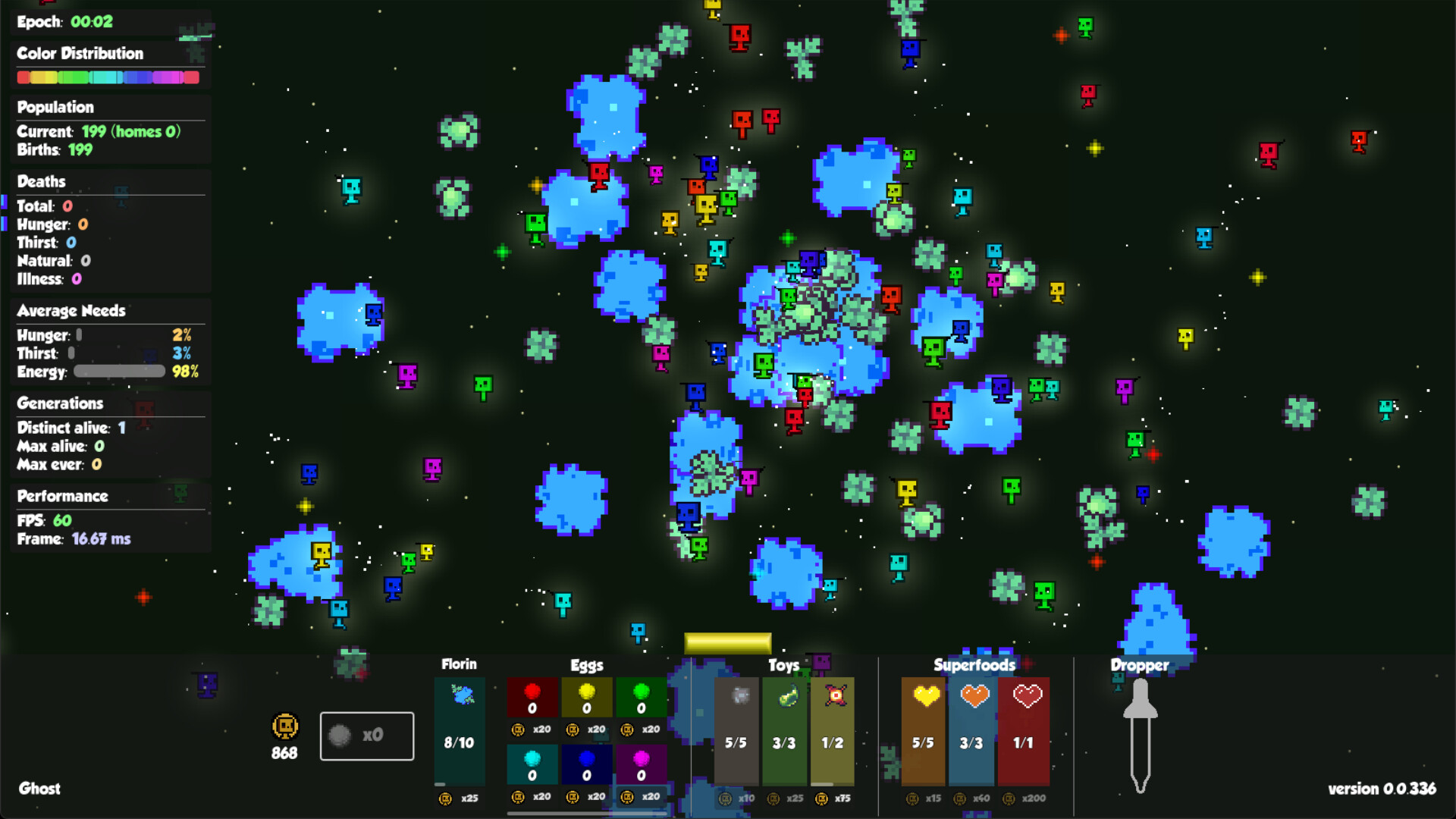 The simulation is already fully playable: you can nurture Neeblies, build thriving colonies, and watch emergent genetics unfold.