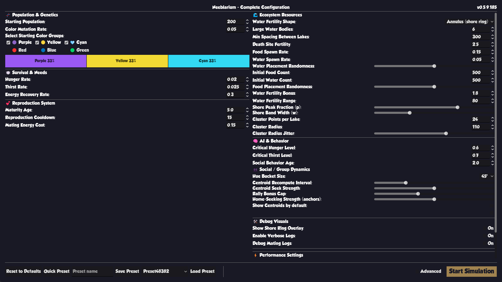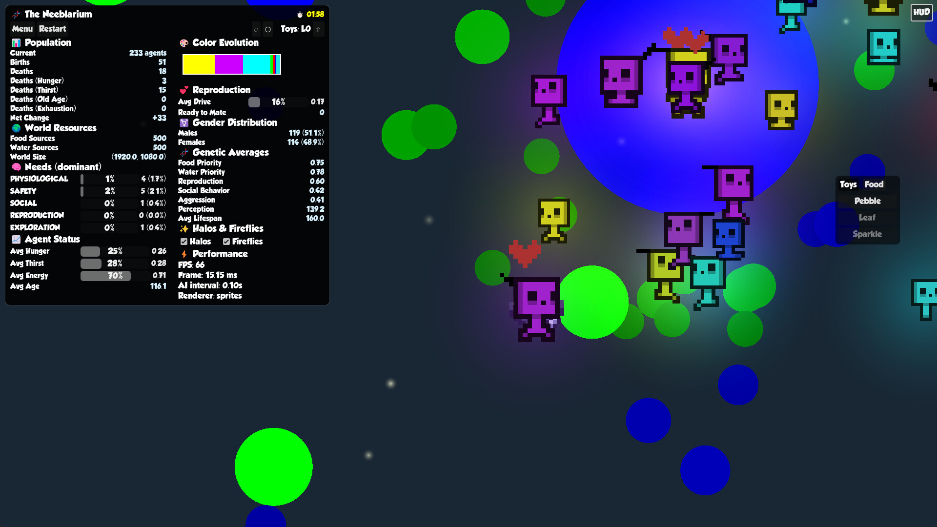 The simulation is already fully playable: you can nurture Neeblies, build thriving colonies, and watch emergent genetics unfold.