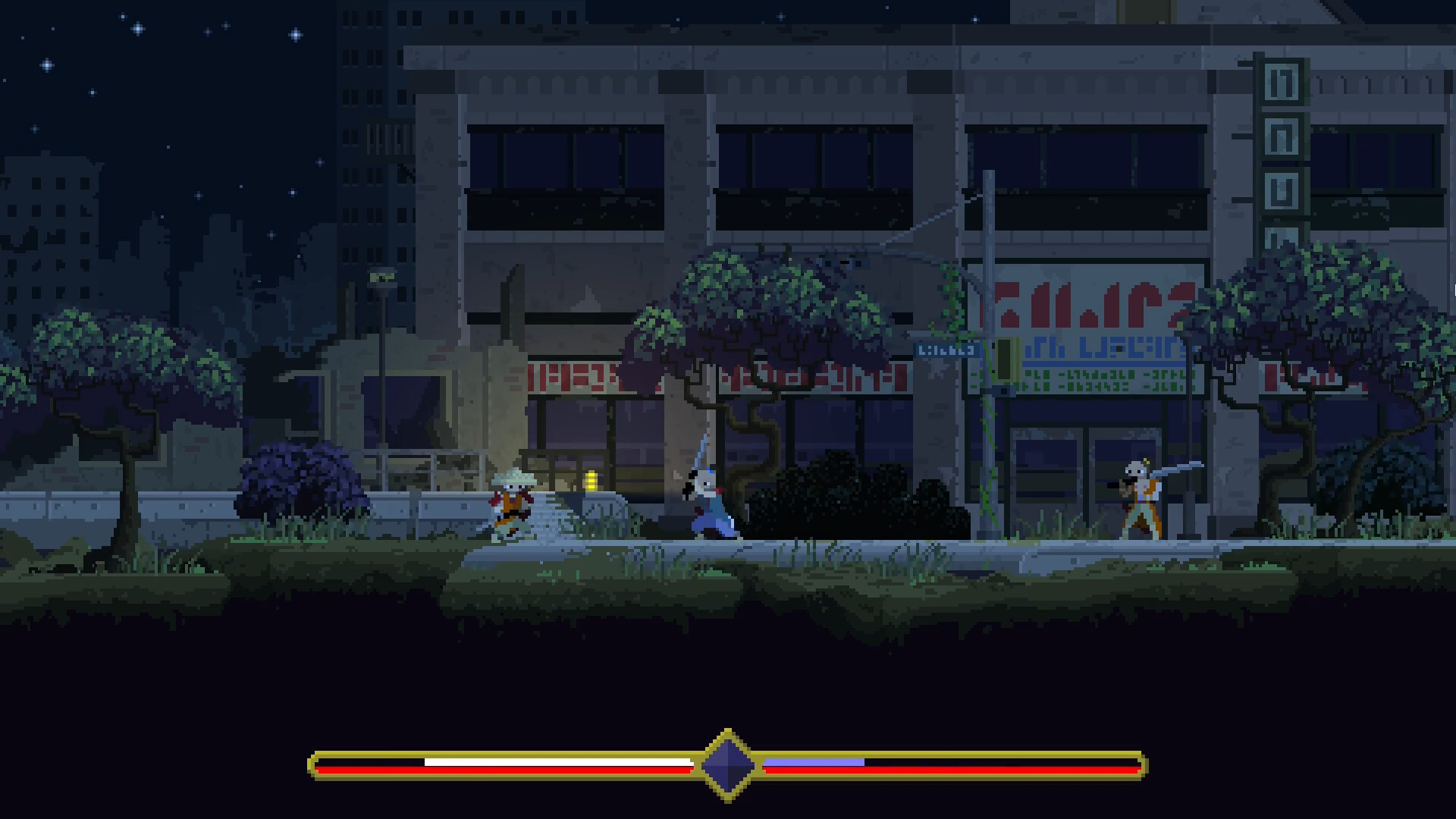 A dueling-focused swordplay-RPG borrowing from samurai aesthetic and style. Scavenge and take jobs to survive to continue your quest to settle a grudge. Featuring 1vs1 duels and larger group battles, Duel Mode, and and unforgiving Journey Mode - with one fragile life to preserve.