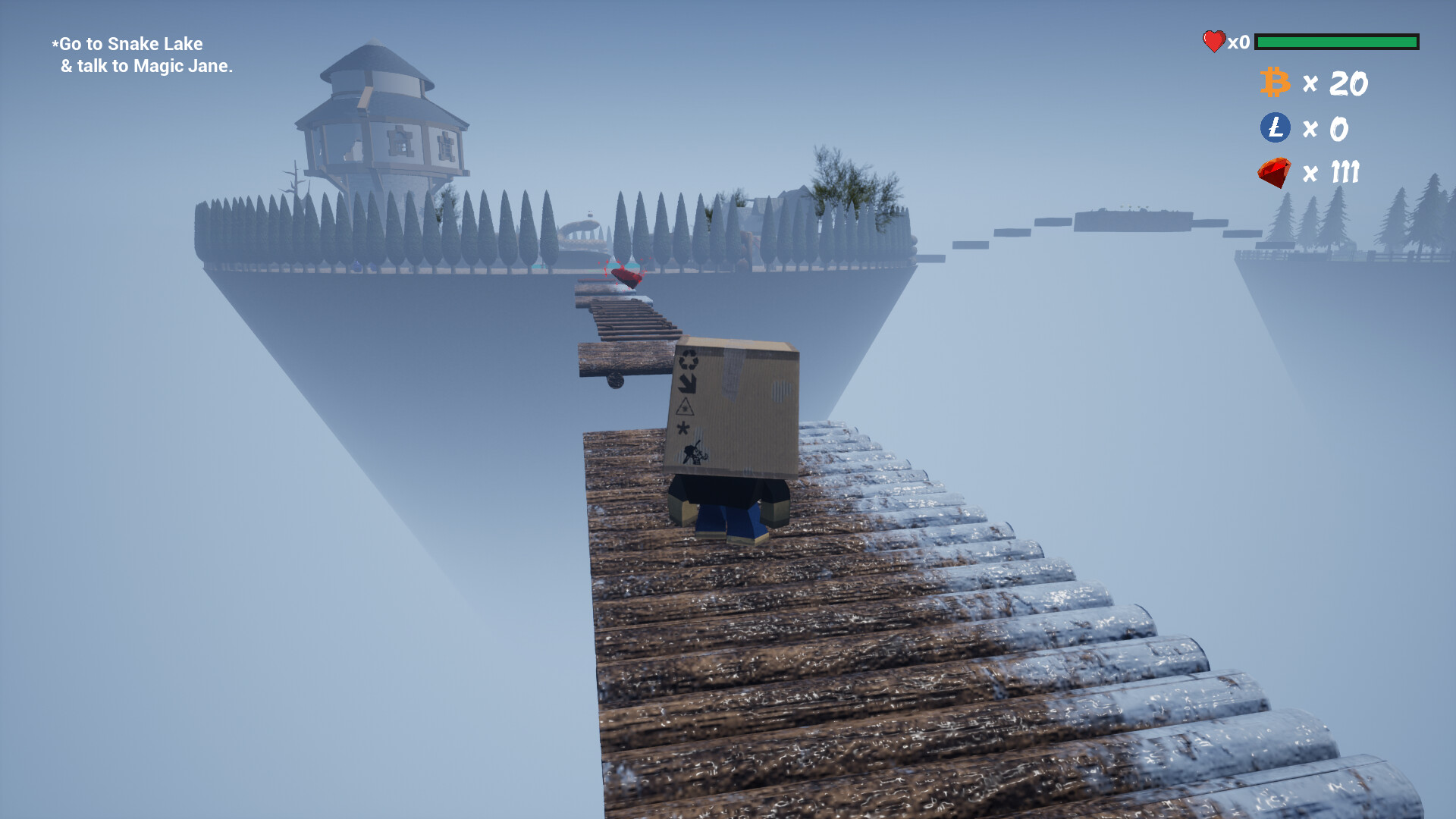 Collect 100 litecoins to unlock the castle doors and get inside to find out what's happening.