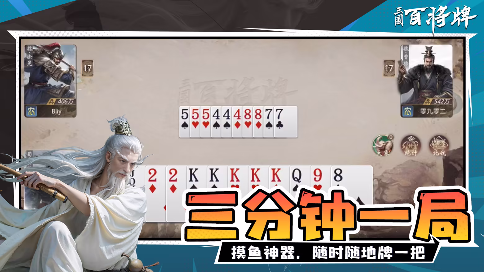 是时候休息摸鱼了!快来《三国:百将牌》,规则简单易懂,三分钟一把,一把就上头,随时随地畅享简单刺激的公平竞技,开启属于你的百变牌局趣味之旅!
