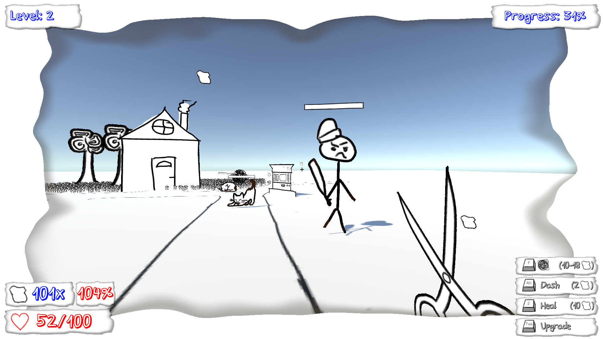 Cut, slice, and tear through waves of paper enemies with responsive melee combat and dynamic movement.