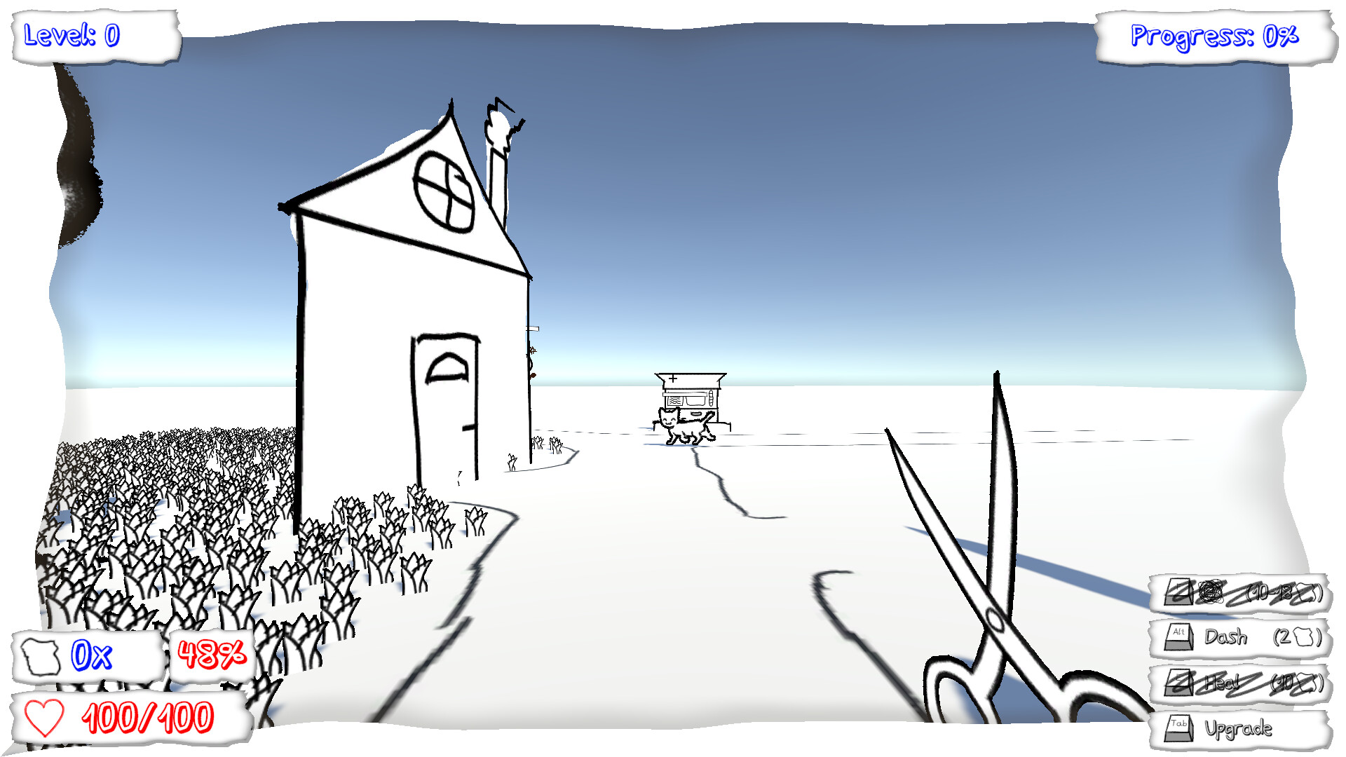 Papered is a fast-paced first-person arena hack-and-slash set in a living sketchbook. Fight paper enemies, cut them apart with scissors and blades, collect fragments, upgrade your weapons, and survive the growing chaos.