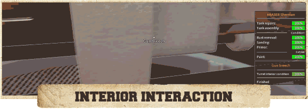 • Interact with tank exterior and interior parts, the engine, fuel system and gearbox, the tracks and wheels