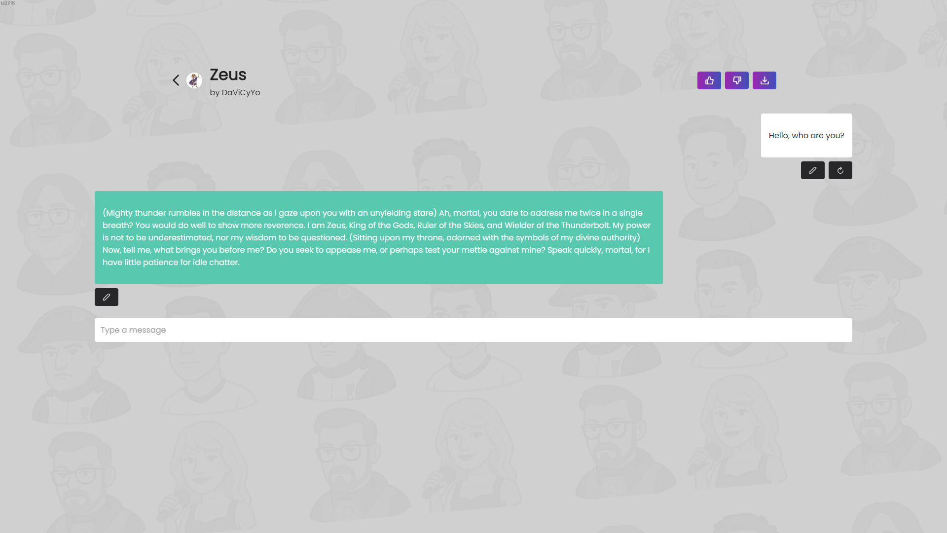 • Role-Play & Interaction: Talk naturally with your avatars or those created by other players—each responds in real time according to its defined personality.