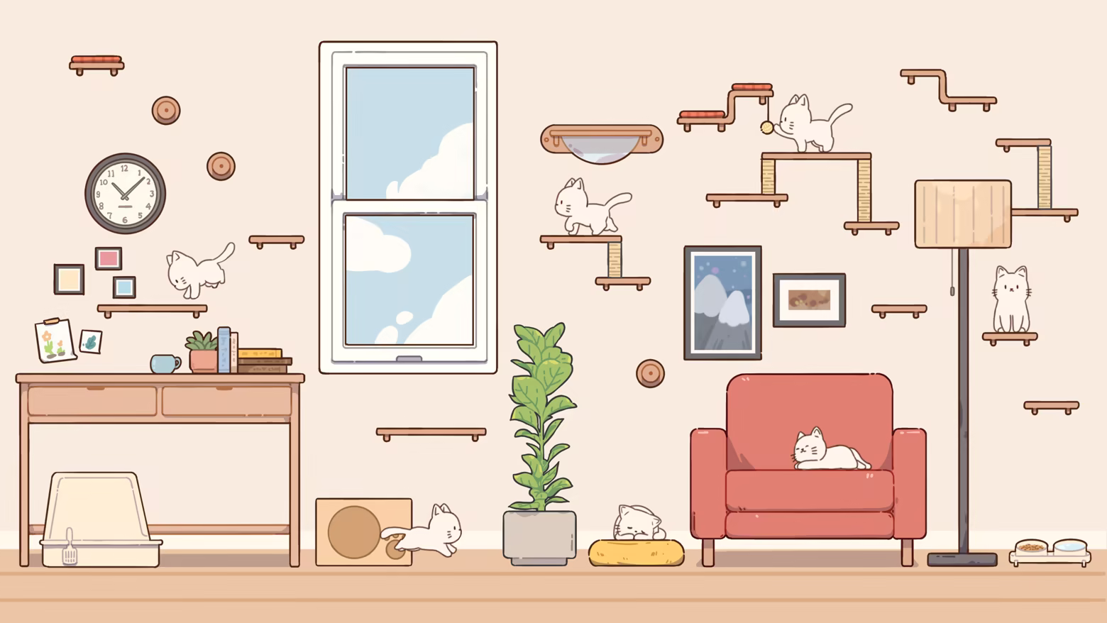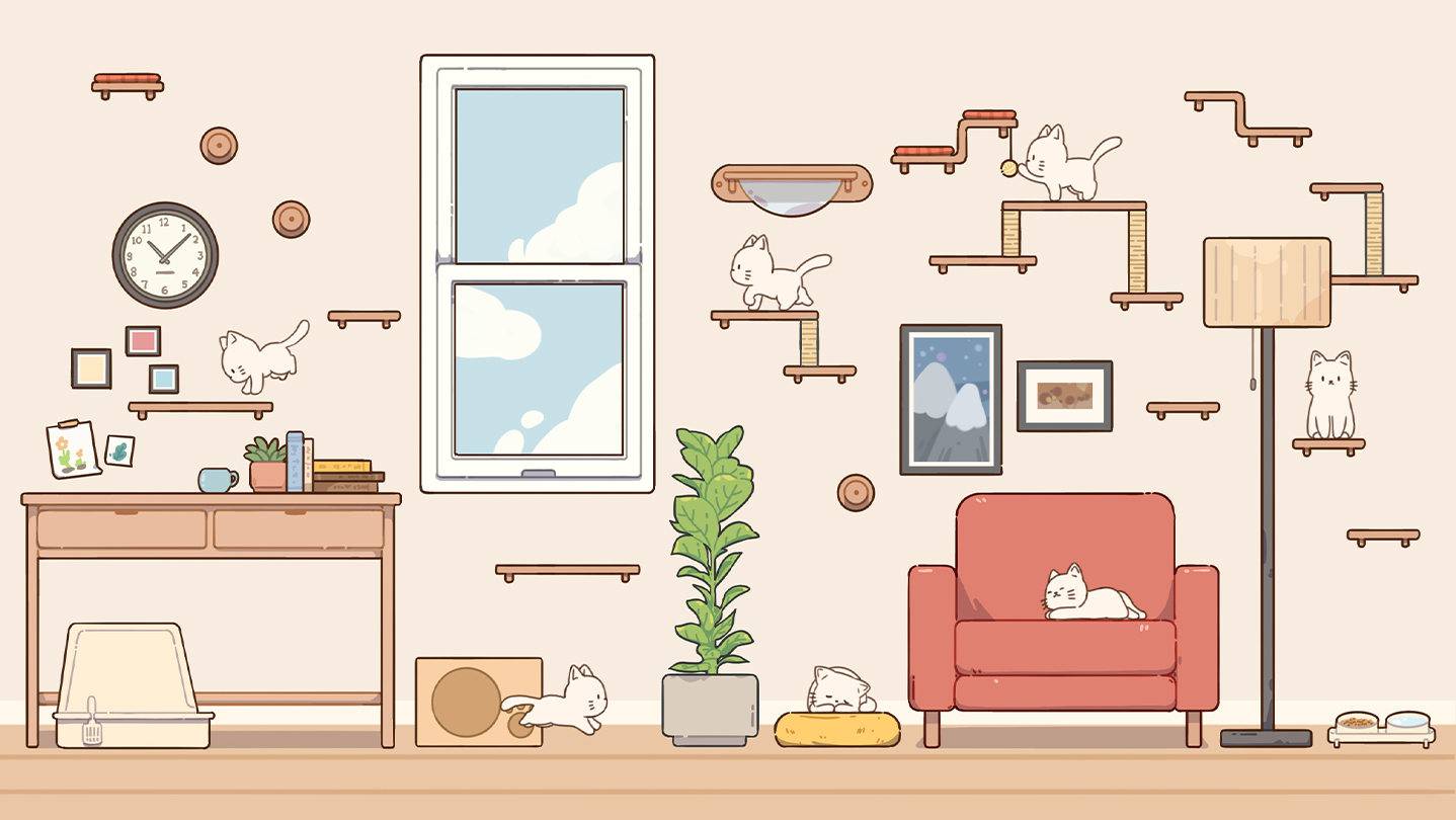 New cat behaviors appearing as your bond grows. You may also come across small surprise events like, a mysterious gift from your cat, or a knocked-over vase revealing something unexpected……(Artist: What? Another vase to draw? Programmer: I also need to write the vase-breaking behavior code! Did I say anything?)