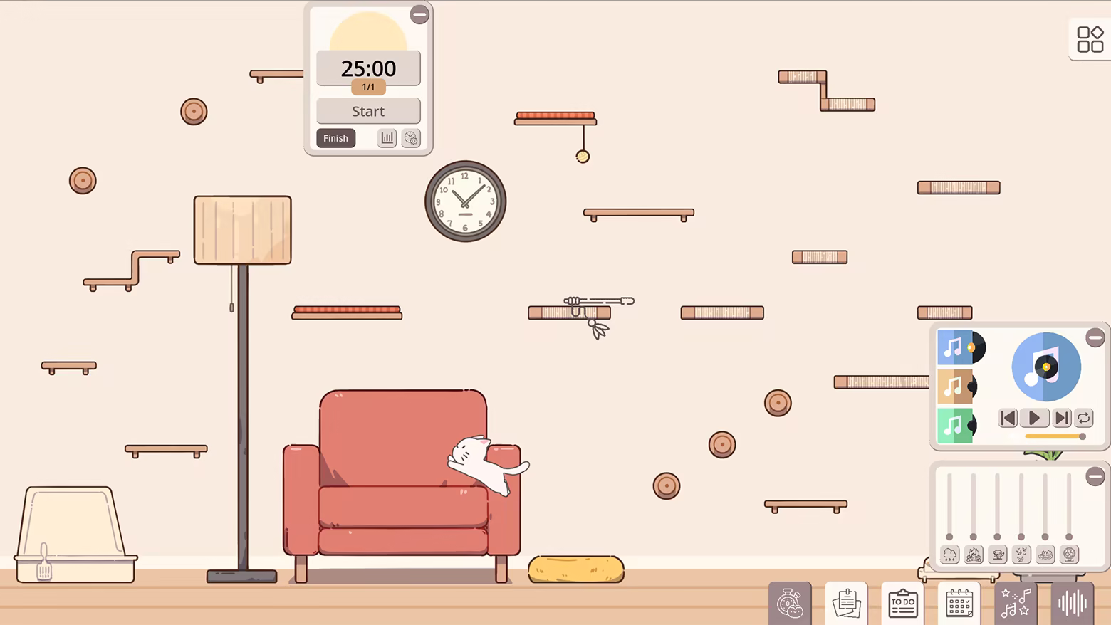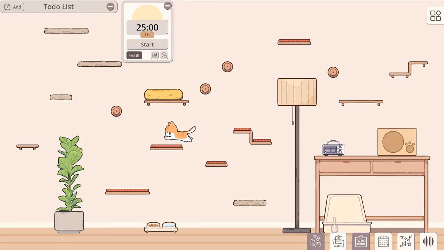 Decorate a cozy little room and spend your focus time with a tiny cat who keeps you warm company. 🐱