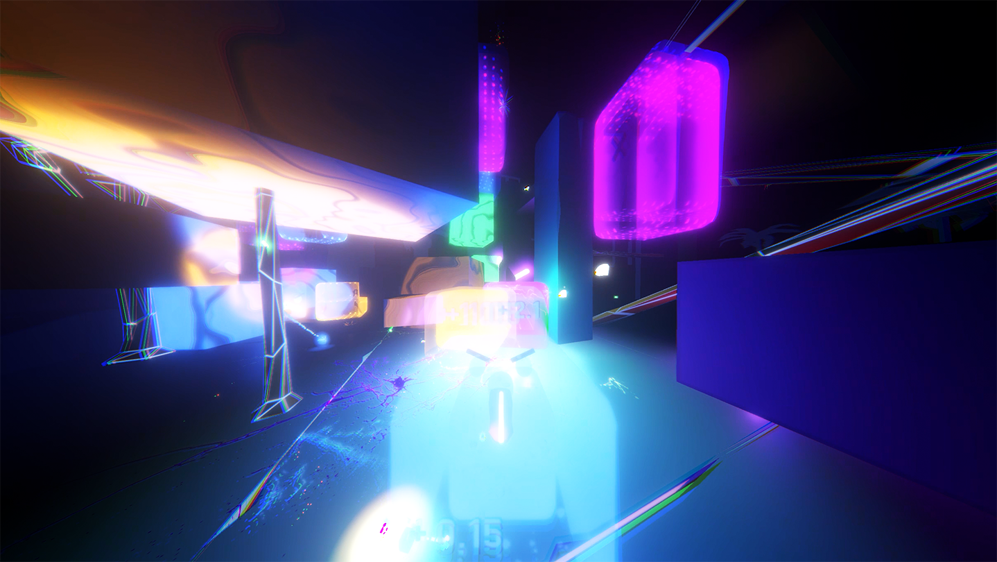 caught outside the bounds and you're launched back in at high speed — synced to the beat.