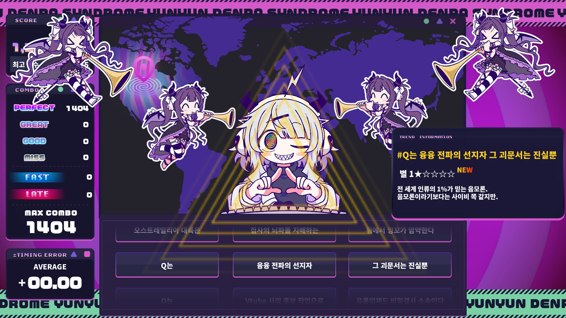 리듬 게임 파트에서 플레이할 수 있는 노래는 전부 ""전파송""!