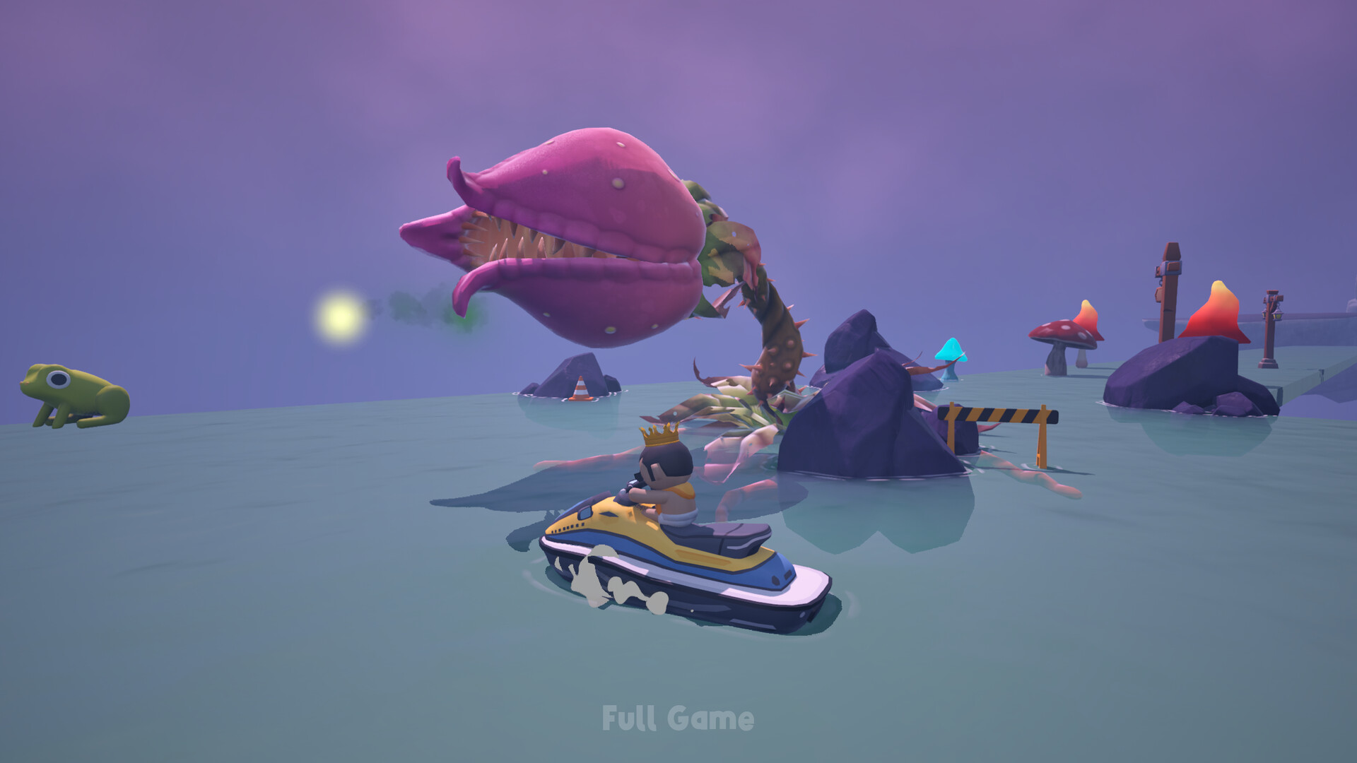 There are several boats: single and two player kayaks, a four player boat and a jet ski. Larger boats are harder to control, so you’ll need your friends. But don’t worry if you’re playing solo, we’ve designed a solo kayak and jet ski for you. You can play the game no matter what!
