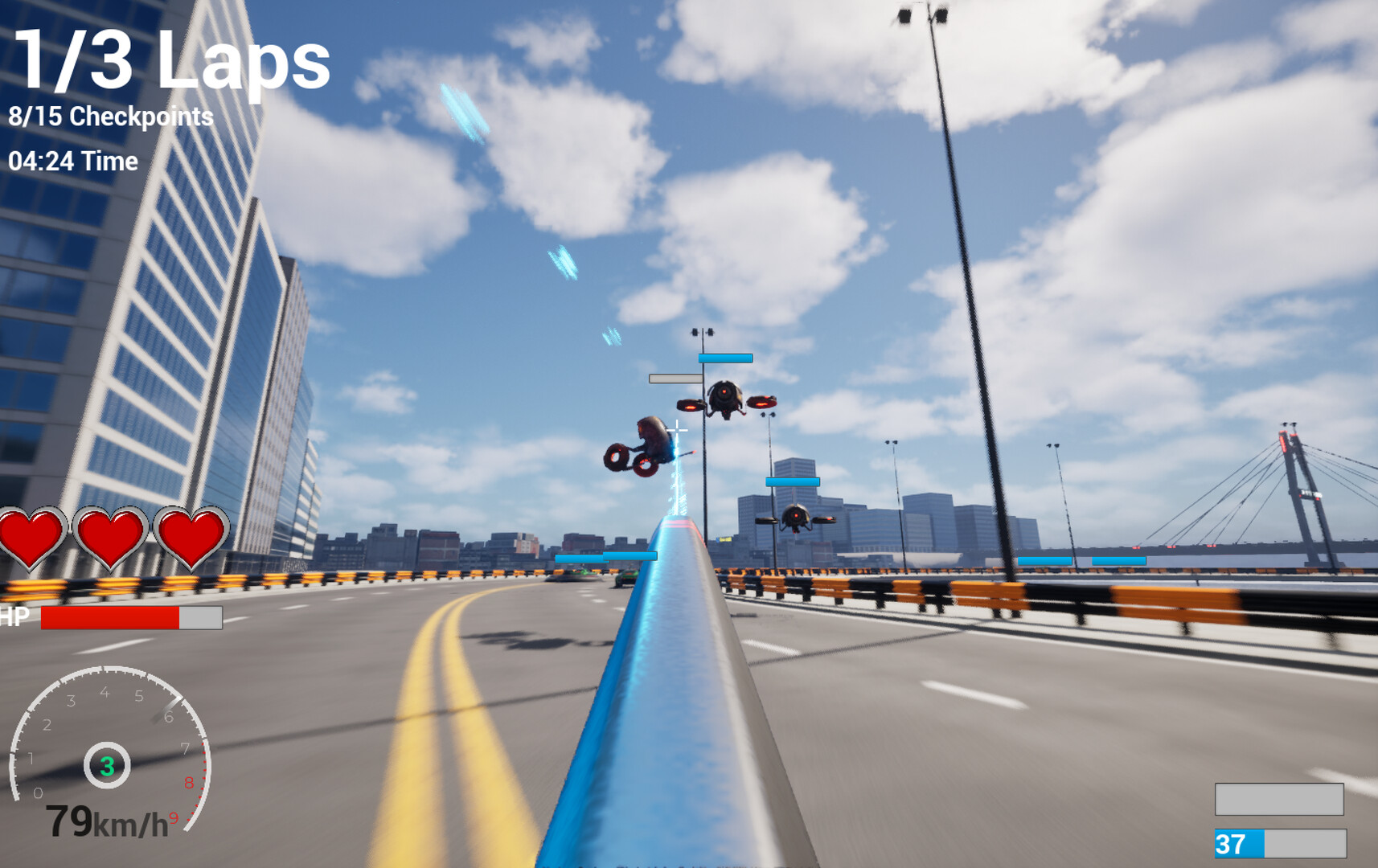 • Tight timer, enemy interference, drone pressure, racing line and firing-angle decisions