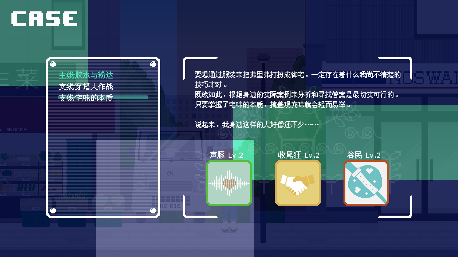 御宅 x 推理 x 养成的像素风悬疑冒险游戏。 扮演偶像宅推理小说家,在这个充满各种ACG捏他和欢乐日常的像素世界中,不断提升能力并结识不同属性的宅友,共同面对一场潜藏在偶像宅世界里的阴谋……