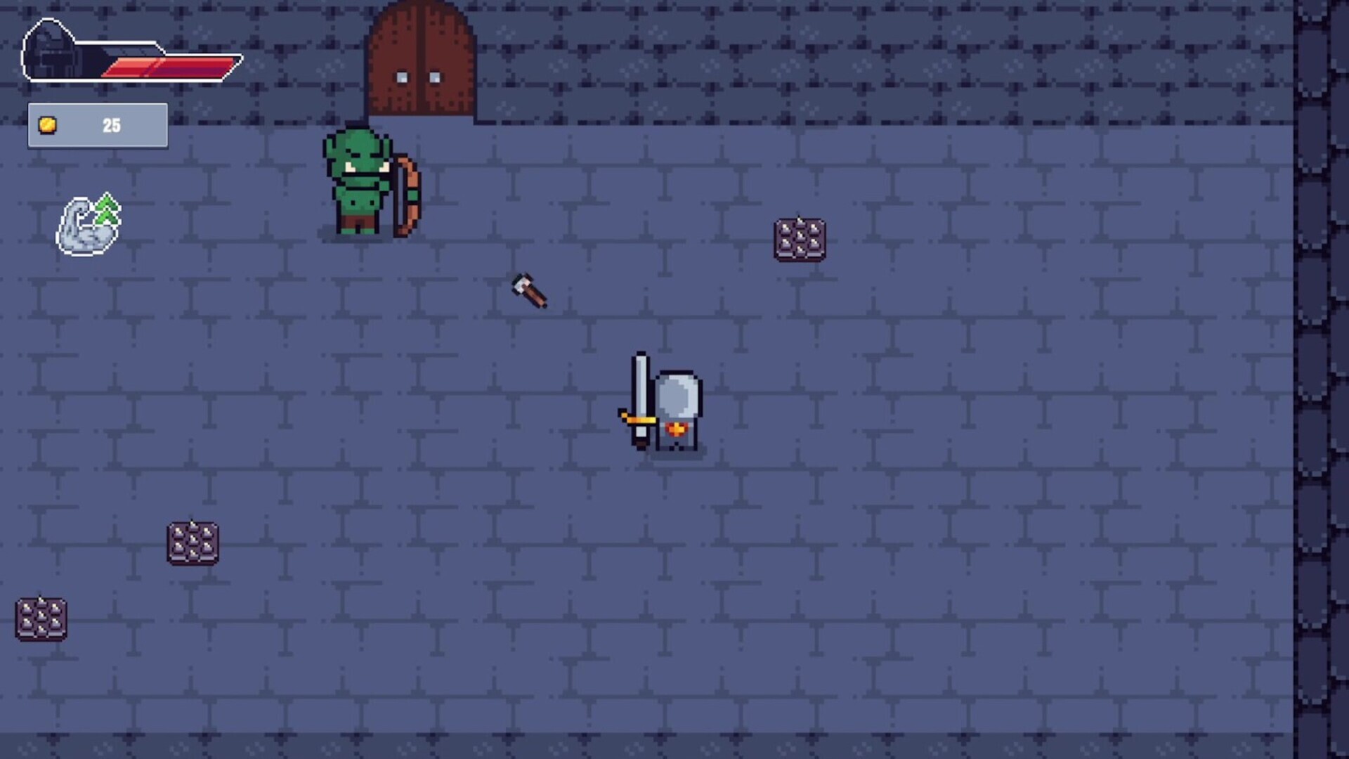 "Explore dark pixel-art dungeons filled with traps, secrets, and deadly foes. Loot treasures, upgrade your gear, and survive the depths of Cryptoria in a gripping top-down dungeon crawler adventure."