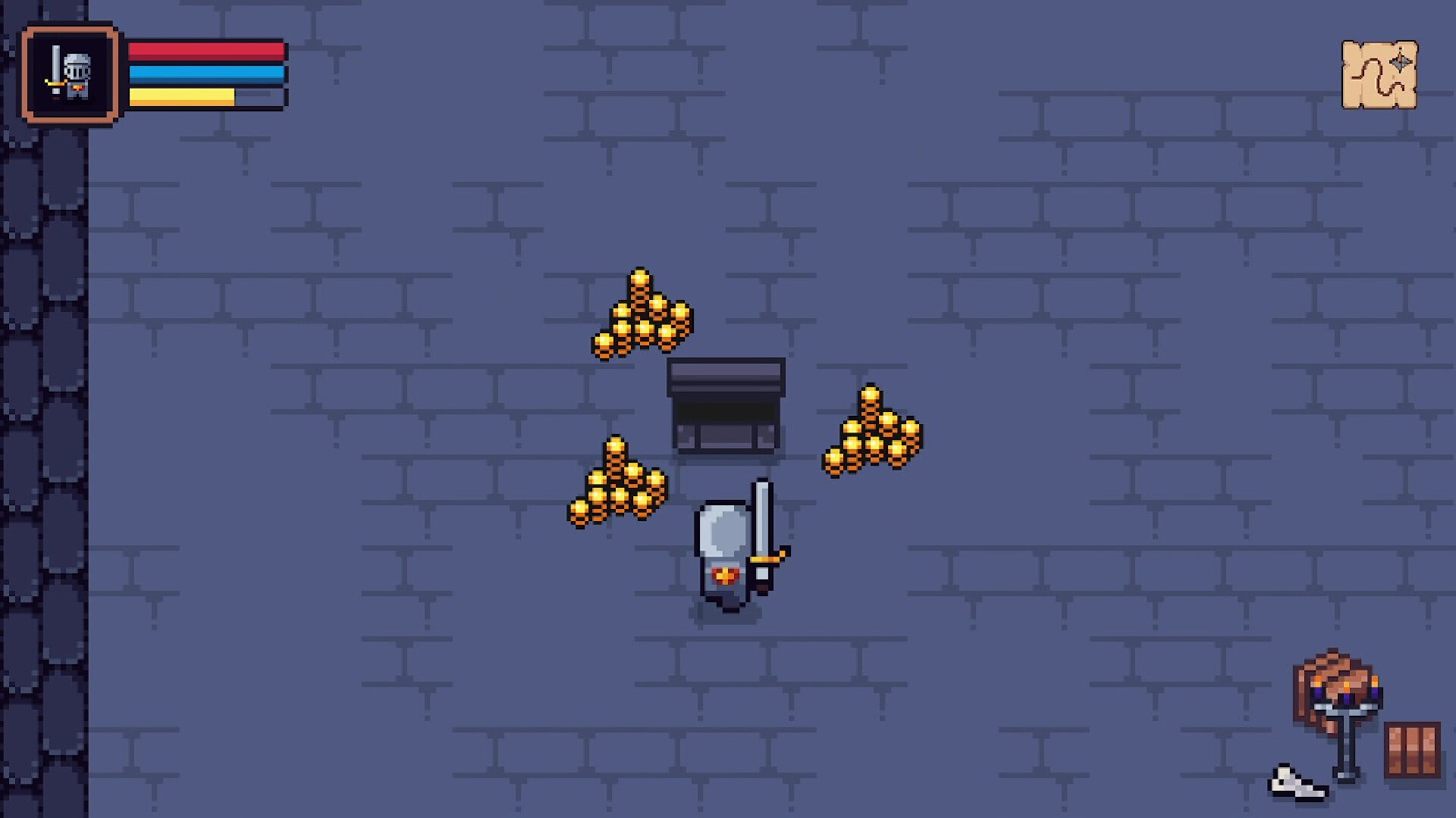 "Explore dark pixel-art dungeons filled with traps, secrets, and deadly foes. Loot treasures, upgrade your gear, and survive the depths of Cryptoria in a gripping top-down dungeon crawler adventure."