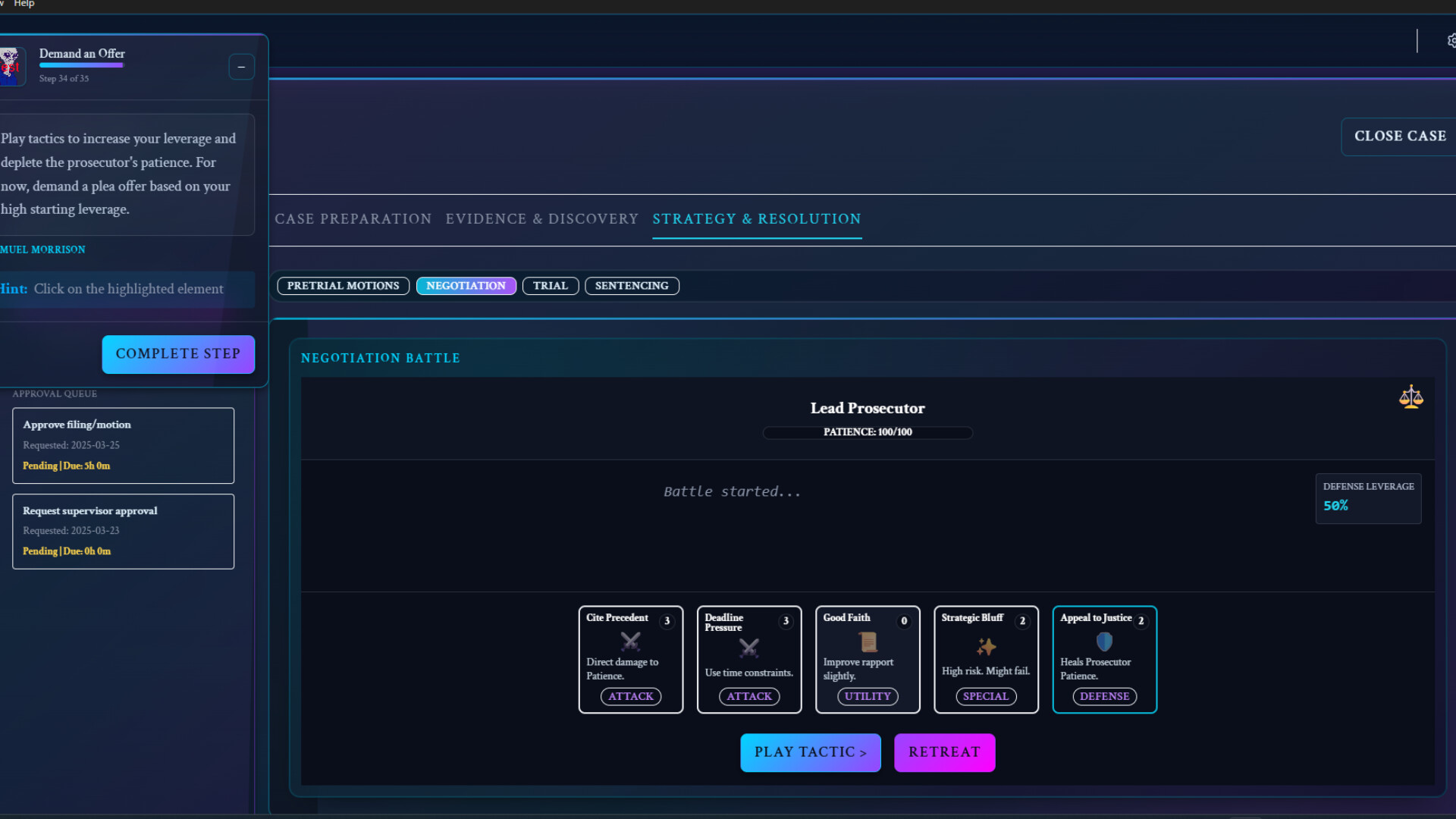 You are the shield. In this high-stakes legal thriller on the colony of Ambearth, you are the only defense against a broken system. Investigate crimes, expose police lies, and battle for every inch of justice. Will you take the plea, or risk it all at trial?