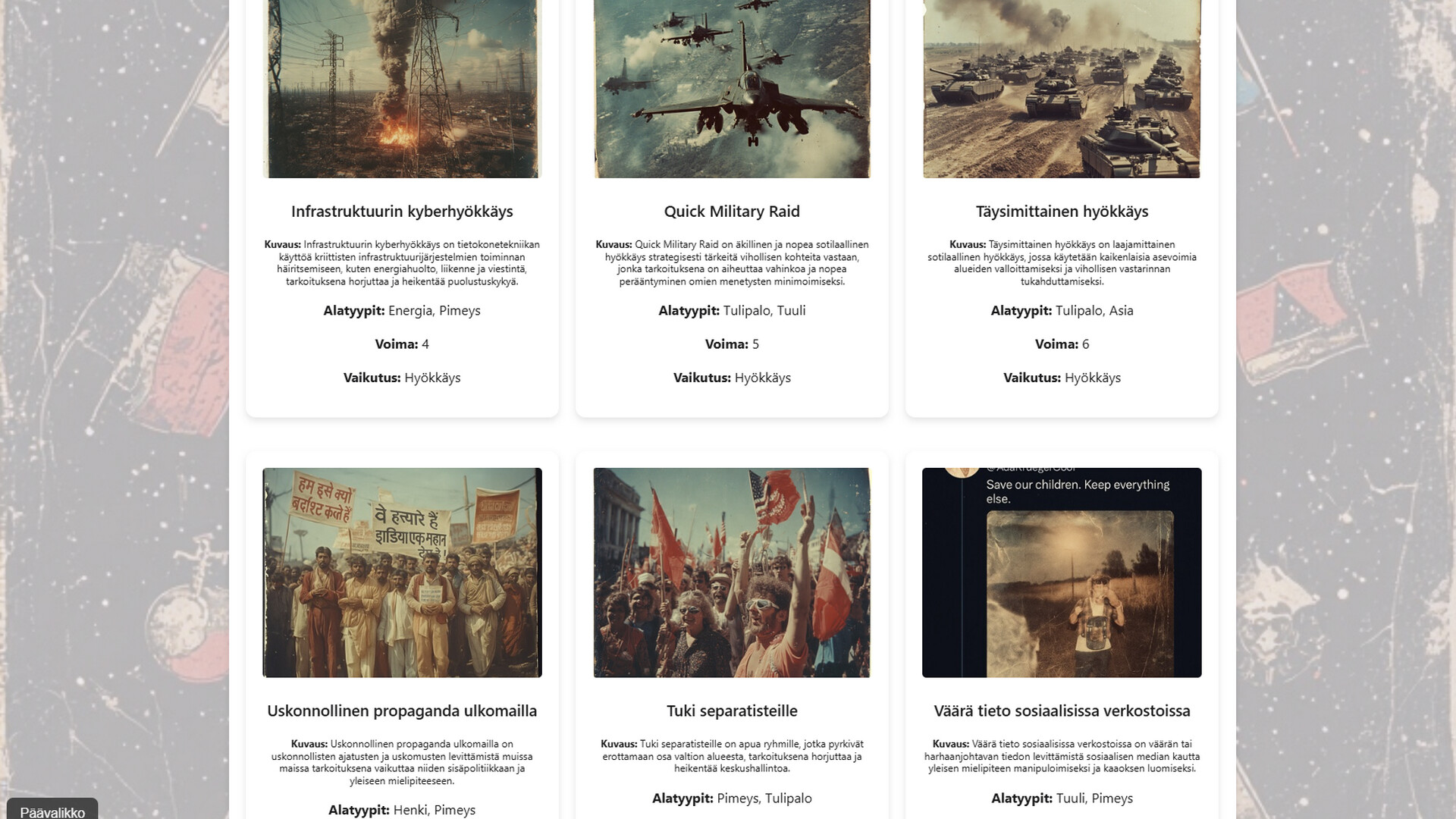 • Ei vain korttien keräämistä, vaan myös niiden menettämistä hyökkäysparametrien perusteella