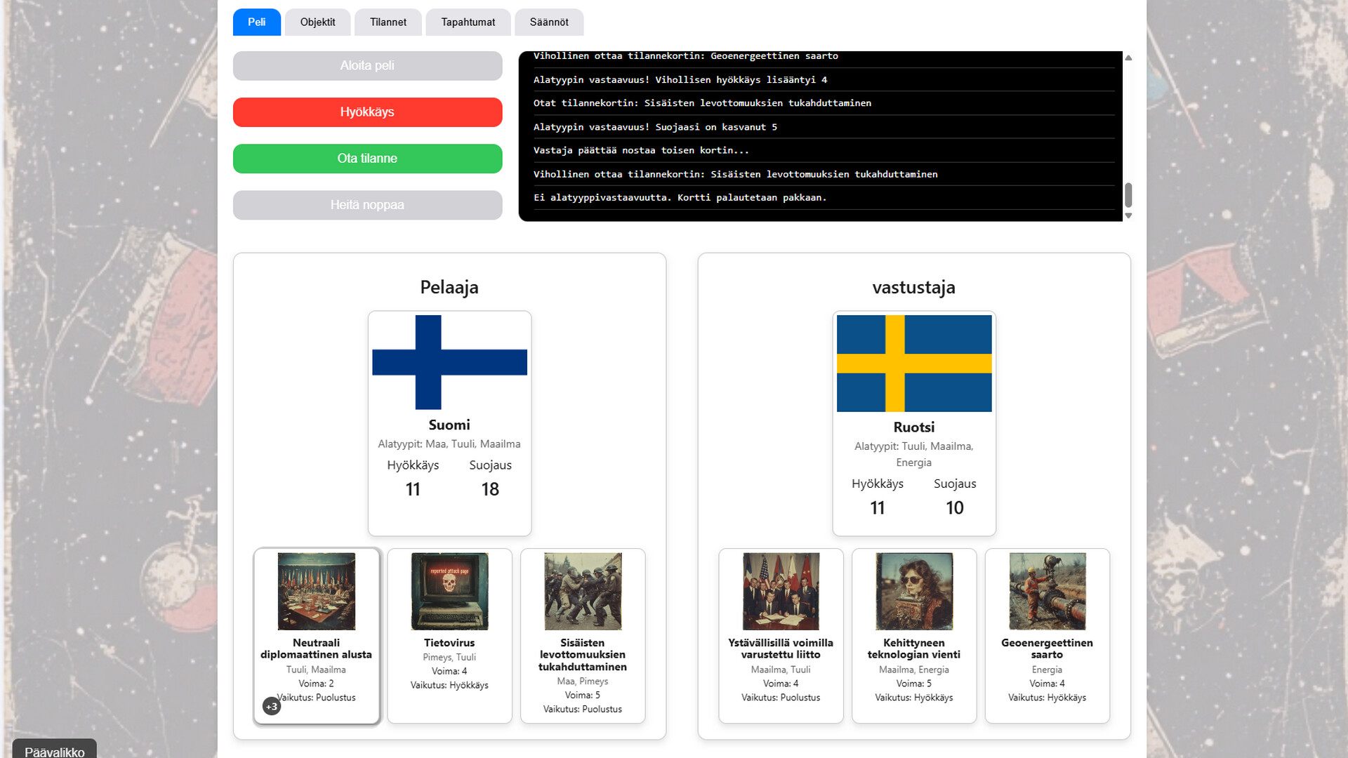 GLOBAL CONTROL COUNTRIES -pelissä on innovatiivinen korttataistelumekaniikka, jota ei löydy mistään muualta: