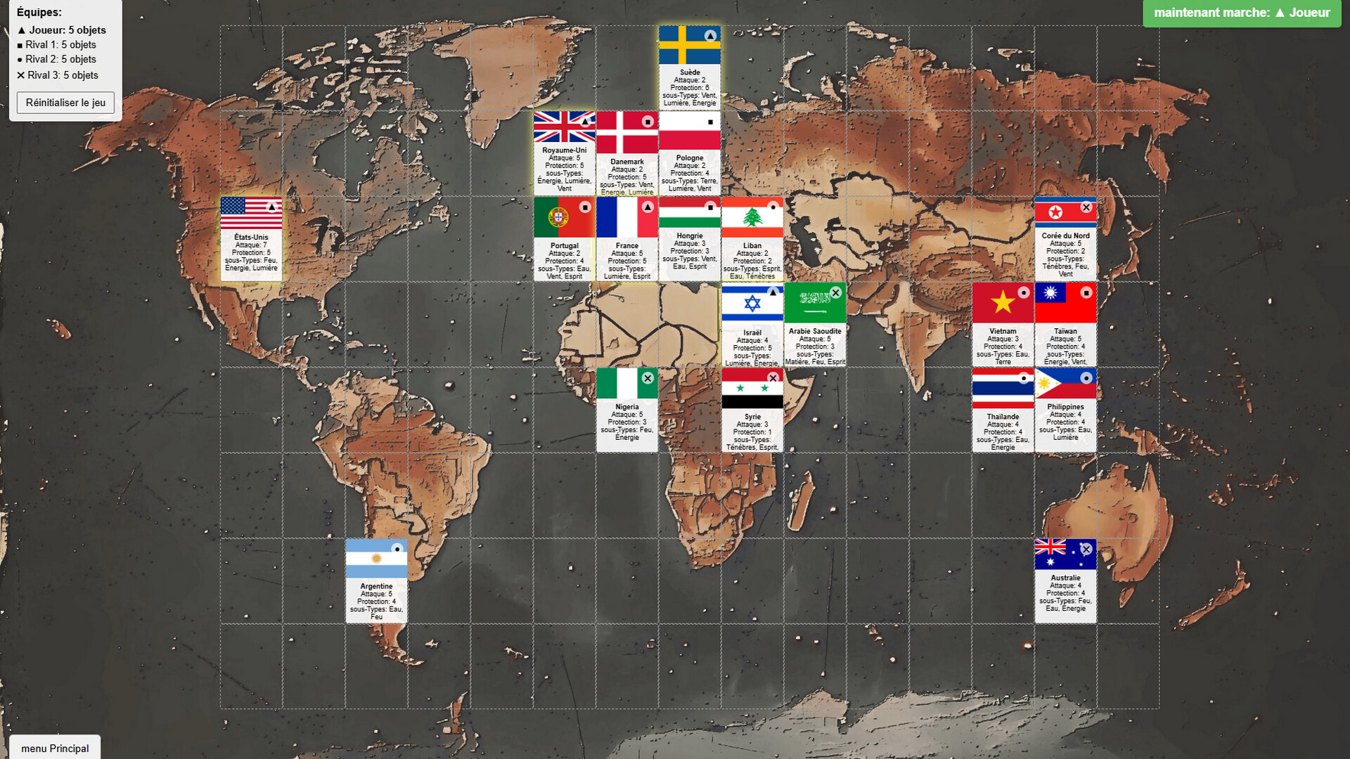 • Lutte de coalitions de cartes sur une carte géographique interactive pour dominer le monde