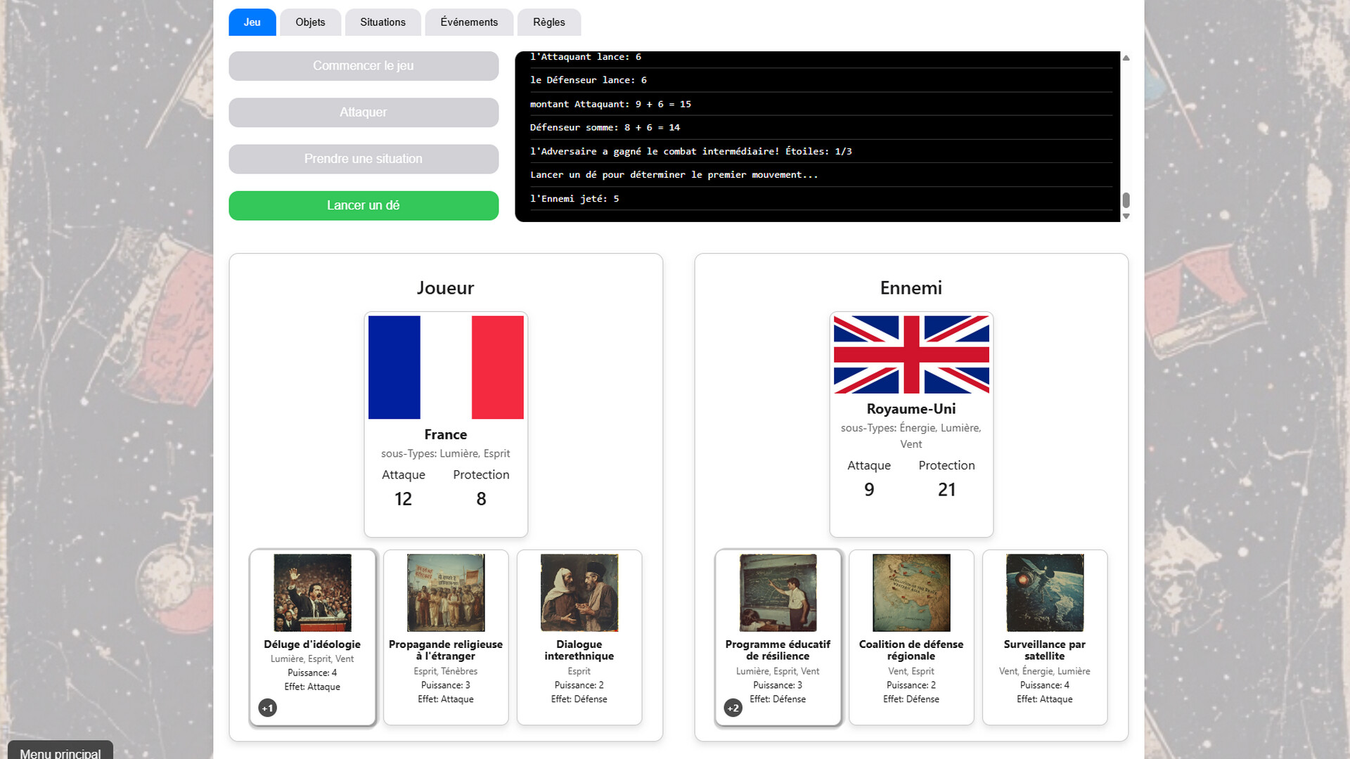 GLOBAL CONTROL COUNTRIES possède une mécanique de combat par cartes innovante, unique en son genre :