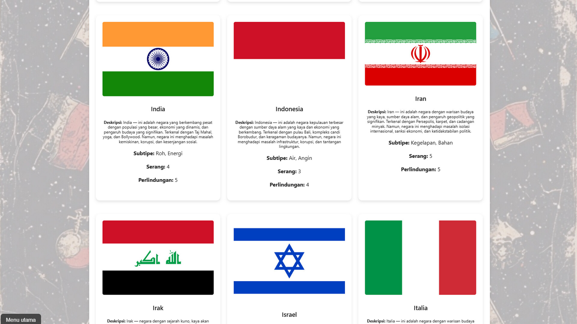 GLOBAL CONTROL COUNTRIES adalah simulator kartu strategis dan ensiklopedia mini untuk manajer internasional. Dukungan dalam 37 bahasa. Efek pembelajaran dan aksi menarik dengan mekanika permainan yang unik.