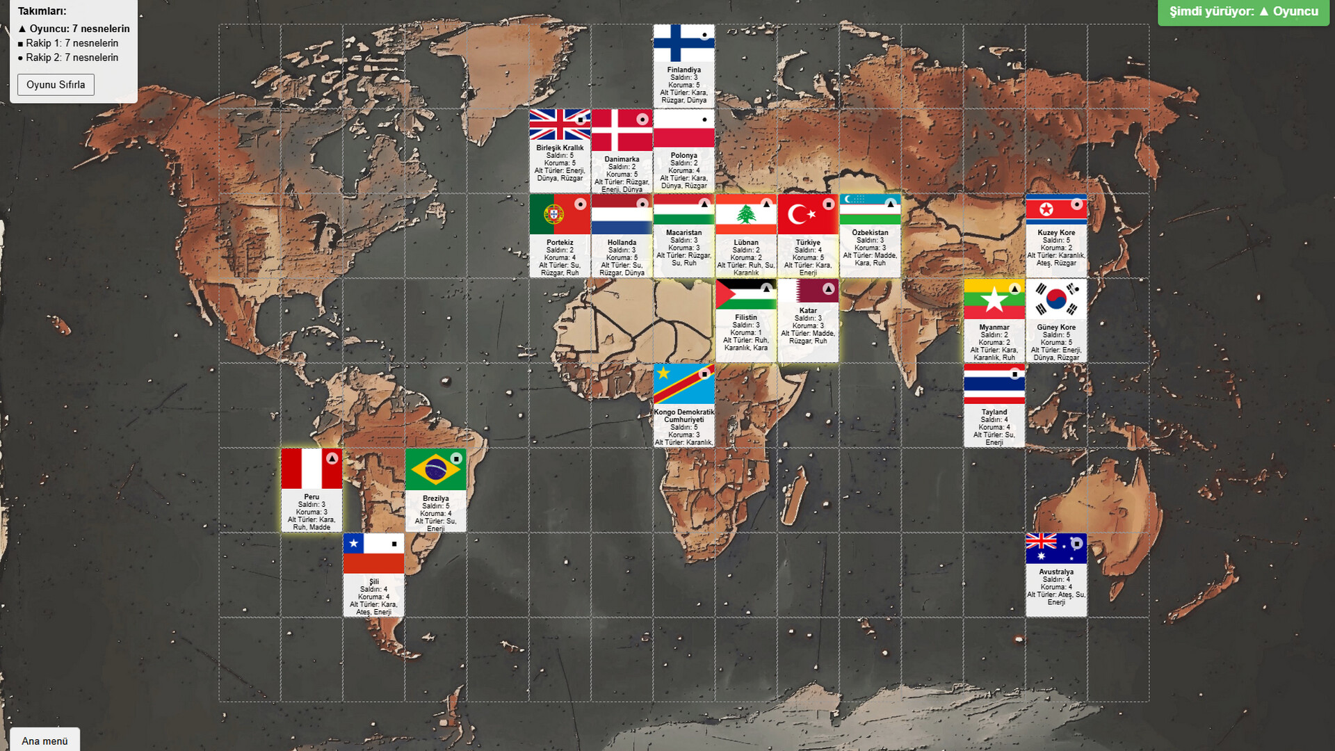 • Küresel hakimiyet için coğrafi etkileşimli haritada kart koalisyonları mücadelesi